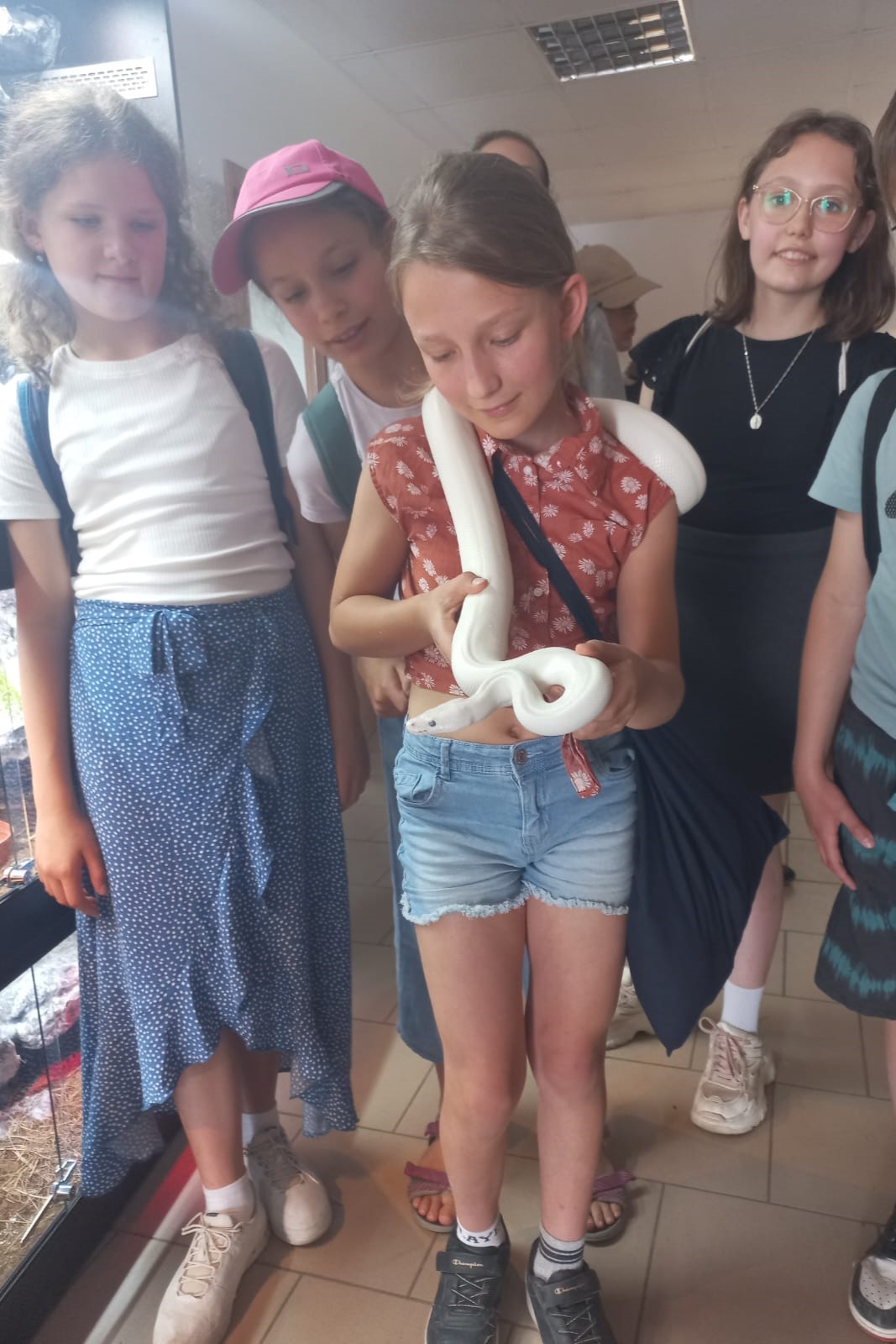 Zaś 28 maja udali się pociągiem do Łańcuta, by zwiedzić Reptarium Wild Life, gdzie obejrzeli wiele egzotycznych gatunków zwierząt i wysłuchali ciekawej lekcji na temat gadów i pająków.
