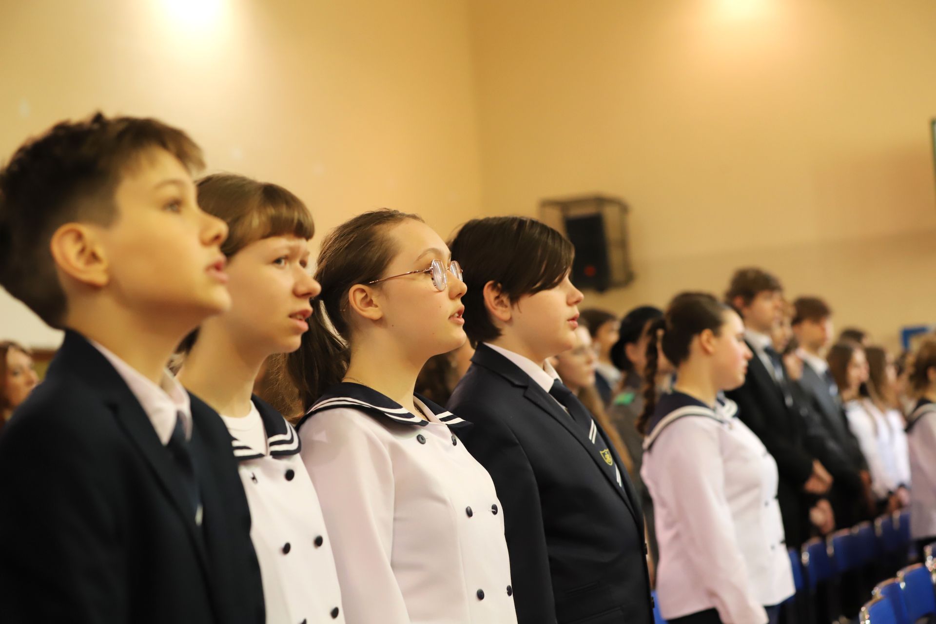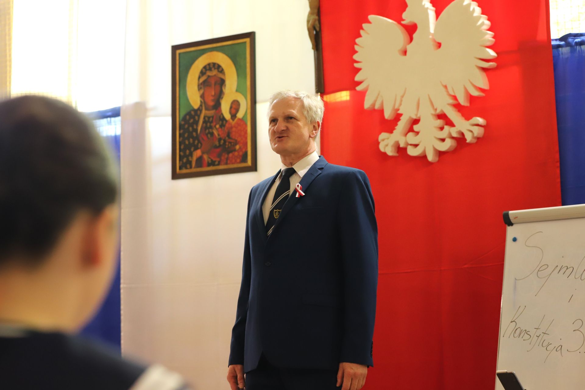 30 kwietnia 2025 r. uczniowie klas 6–8 Szkoły Podstawowej oraz klas I–III Liceum wraz z nauczycielami zgromadzili się w sali gimnastycznej, by uczcić rocznicę uchwalenia Konstytucji 3 Maja.