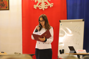 Z tej okazji licealiści, pod kierunkiem pana Tomasza Januszewskiego, przygotowali wyjątkowy program artystyczny – swoistą lekcję historii inspirowaną zajęciami pana Tomasza na temat Sejmu Wielkiego i Konstytucji 3 Maja. W rolę prowadzącej lekcję wcieliła się uczennica – Oliwia Jaźwiecka, która na potrzeby programu przyjęła nazwisko Joanna Tomaszewska – będące nawiązaniem do nazwiska nauczyciela prowadzącego. W ciekawy sposób zaangażowała całą publiczność do aktywnego przypomnienia sobie najważniejszych wydarzeń z końca XVIII wieku. Padały pytania, a z sali płynęły odpowiedzi – historia ożyła na naszych oczach.
