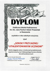 W czerwcu roku szkolnego 2021, 2022, 2023, 2024 i 2025 r. Szkoła Podstawowa Sióstr Prezentek w Rzeszowie otrzymała tytuł Szkoły Przyjaznej Utalentowanym Uczniom