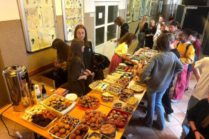 23 września 2025 r. w budynku przy ul. Jałowego 1 obchodziliśmy pierwszy dzień jesieni w wyjątkowy sposób. Był to dzień bez mundurka, osłodzony pysznymi wypiekami ze szkolnej kawiarenki i ogrzany kubkiem aromatycznej, jesiennej herbatki.