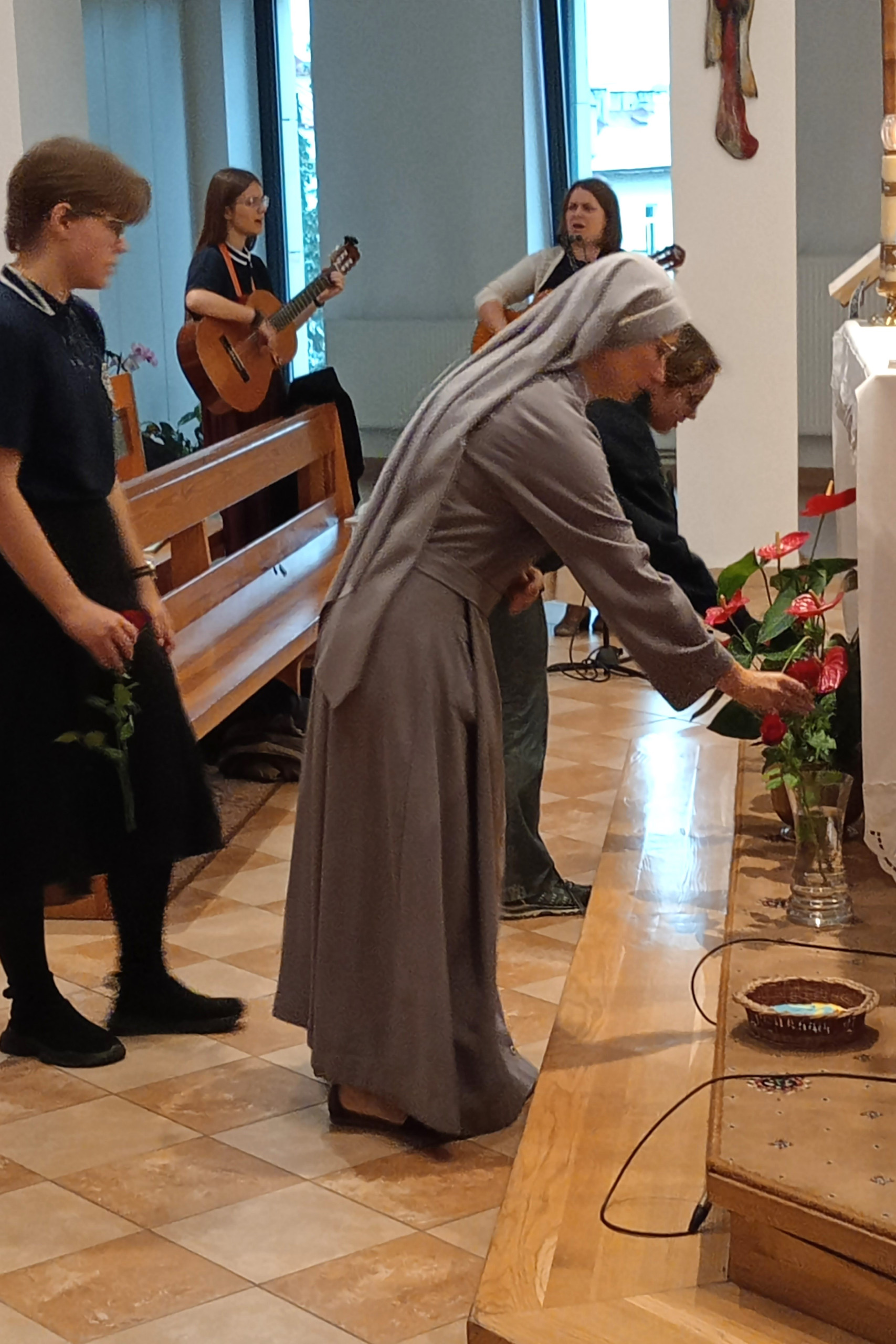 Podczas Mszy Świętej, sprawowanej pod przewodnictwem ks. Krzysztofa Wilczkiewicza, dziękowaliśmy za dar ocalenia dzieci nienarodzonych, ponieważ tego dnia zakończyliśmy dzieło Duchowej Adopcji Dziecka Poczętego. Osoby, które podjęły się tej modlitwy, złożyły przed ołtarzem symboliczną różę – znak wdzięczności i pamięci o powierzonym dziecku.