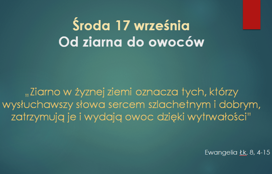 Codziennym rozważaniom towarzyszyły cytaty wyświetlane na szkolnych korytarzach.