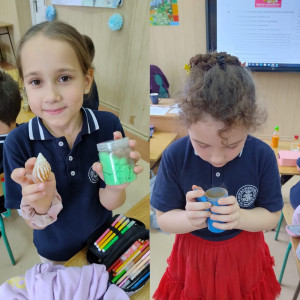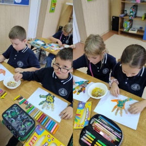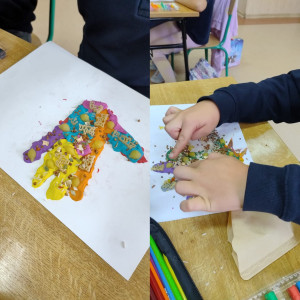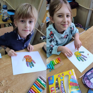 Na zakończenie zajęć dzieci wykonały „sensoryczne dłonie”, które pozwoliły utrwalić wiedzę o zmysłach i jednocześnie rozwinąć kreatywność oraz zdolności manualne.