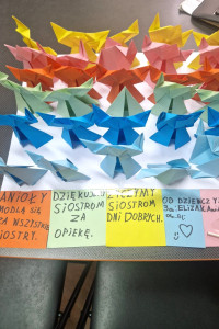 2 października 2025 r., w dniu liturgicznego wspomnienia Aniołów Stróżów, uczniowie klasy 3 Szkoły Podstawowej przygotowali dla Sióstr wyjątkową niespodziankę. Własnoręcznie wykonali zastęp aniołów techniką origami, ofiarując go jako wyraz wdzięczności i pamięci.