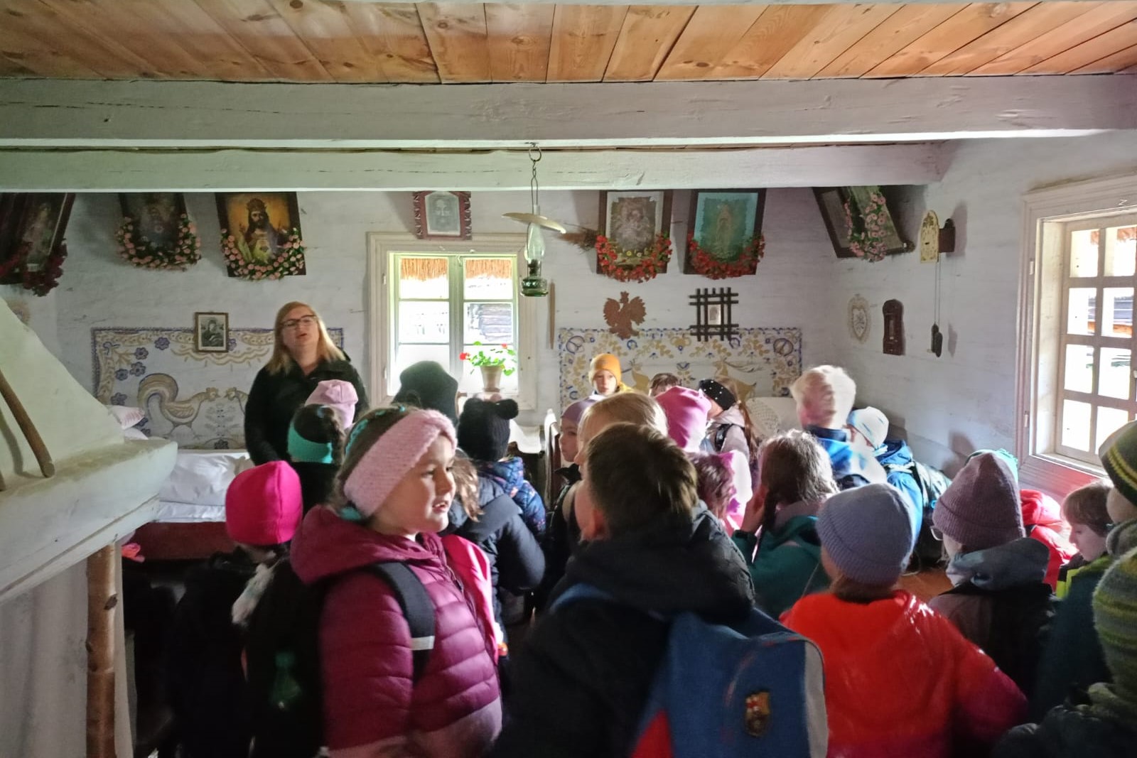 Było też trochę ruchu – spacer między starymi chałupami, zaglądanie przez okna i szukanie ducha młynarza (na szczęście nikt go nie znalazł). Na koniec były zakupy, a potem powrót autobusem, w którym większość śpiewała, a reszta próbowała spać – z marnym skutkiem, bo śpiewający byli głośniejsi.