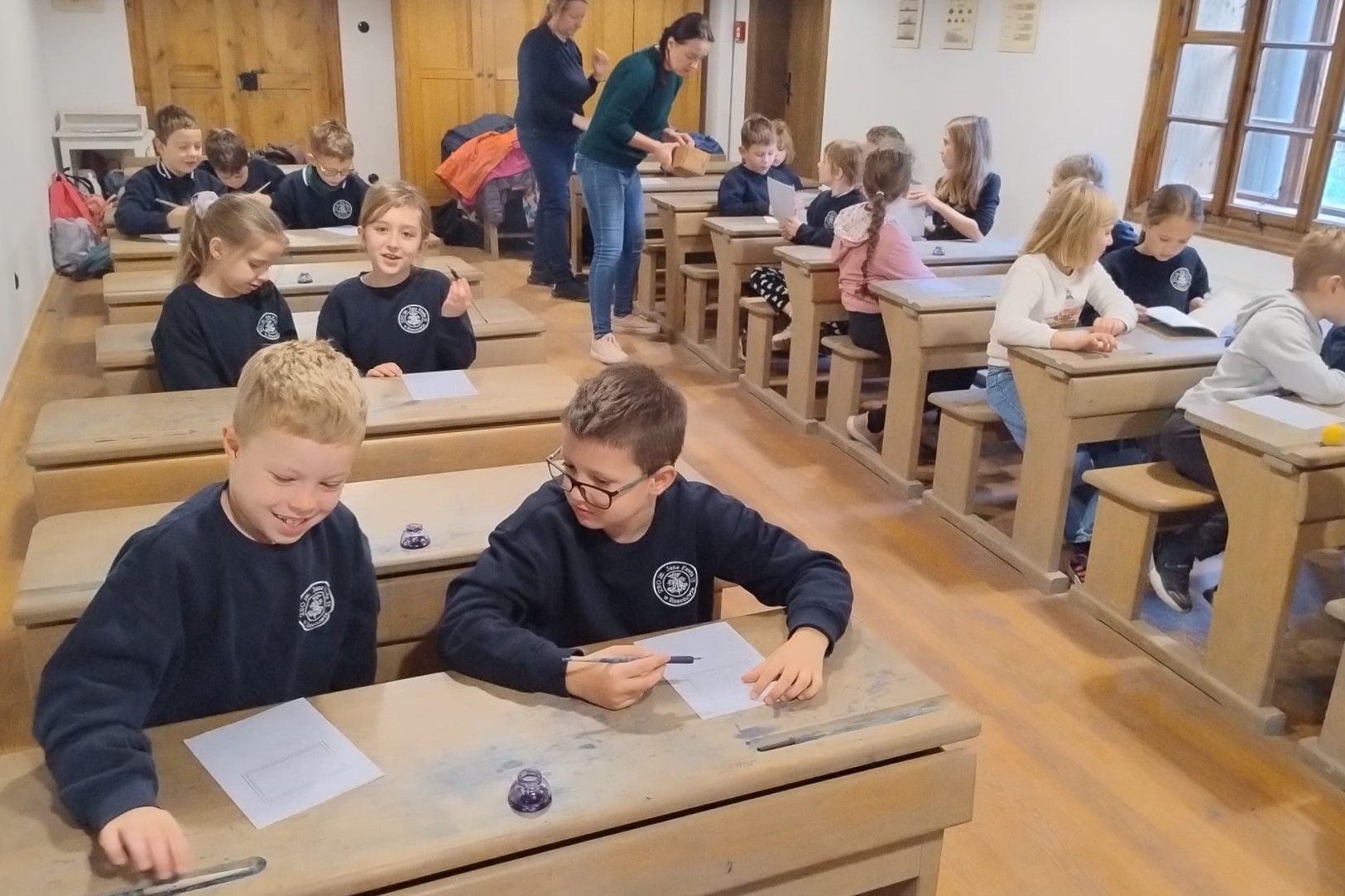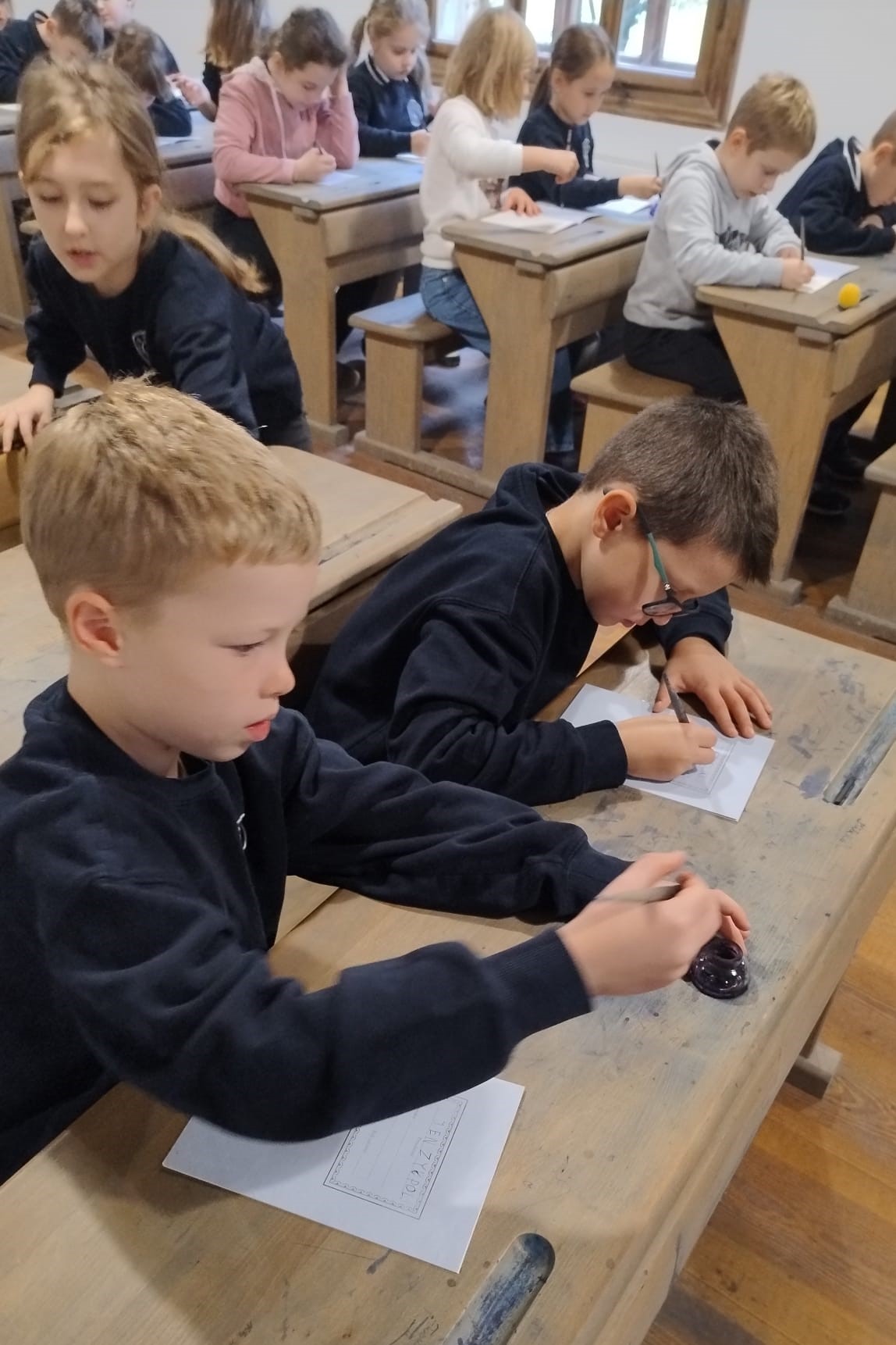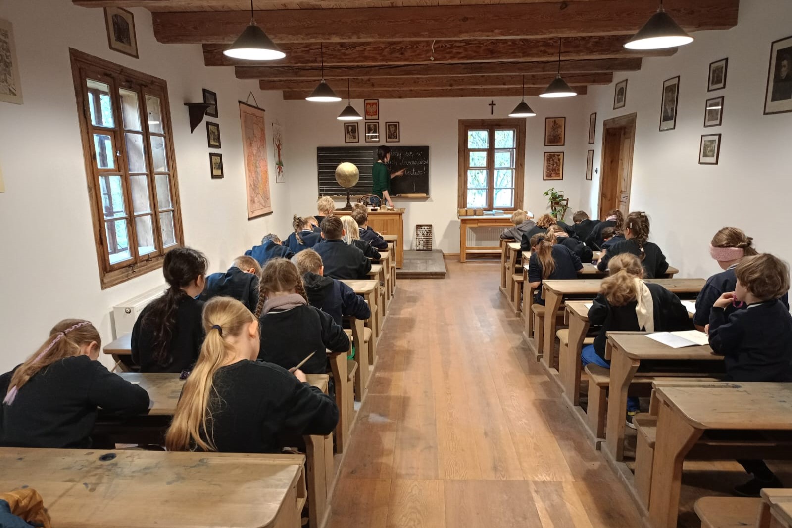 Na miejscu przywitały nas stare chaty, wiatraki i… gęsi, które wyglądały, jakby pilnowały całego muzeum. Dowiedzieliśmy się, jak kiedyś żyli ludzie bez prądu, Internetu i TikToka – wszyscy byli w lekkim szoku! Potem zobaczyliśmy, jak wyglądała szkoła sprzed 100 lat. Niektórzy stwierdzili, że wtedy pani była dużo surowsza, więc lepiej wrócić do naszej.