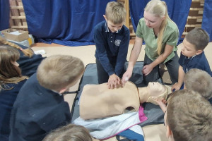29 października 2025 r. uczniowie klas pierwszych i drugich Szkoły Podstawowej uczestniczyli w warsztatach dotyczących udzielania pierwszej pomocy przedmedycznej.
