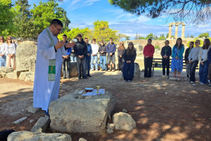 W środę, po przekroczeniu Kanału Korynckiego, grupa udała się na Peloponez. Pierwszym przystankiem był Korynt. To właśnie tam, na górze zwanej Akrokorynt, król Syzyf wtaczał swój kamień. Przy ruinach świątyni Apollina, w miejscu, gdzie św. Paweł głosił słowo do Koryntian, uczestnicy wzięli udział we Mszy Świętej. Tam też powstał wzór kapitelu kolumny korynckiej.