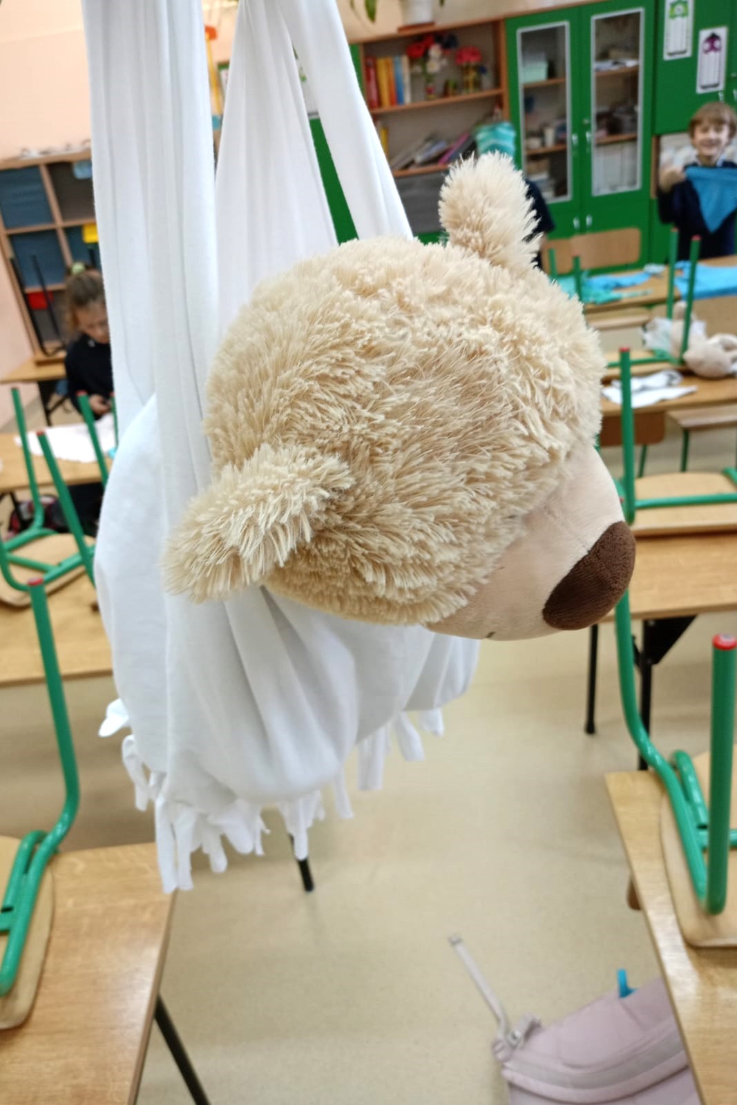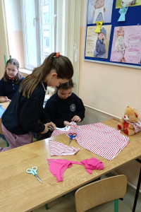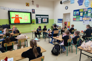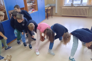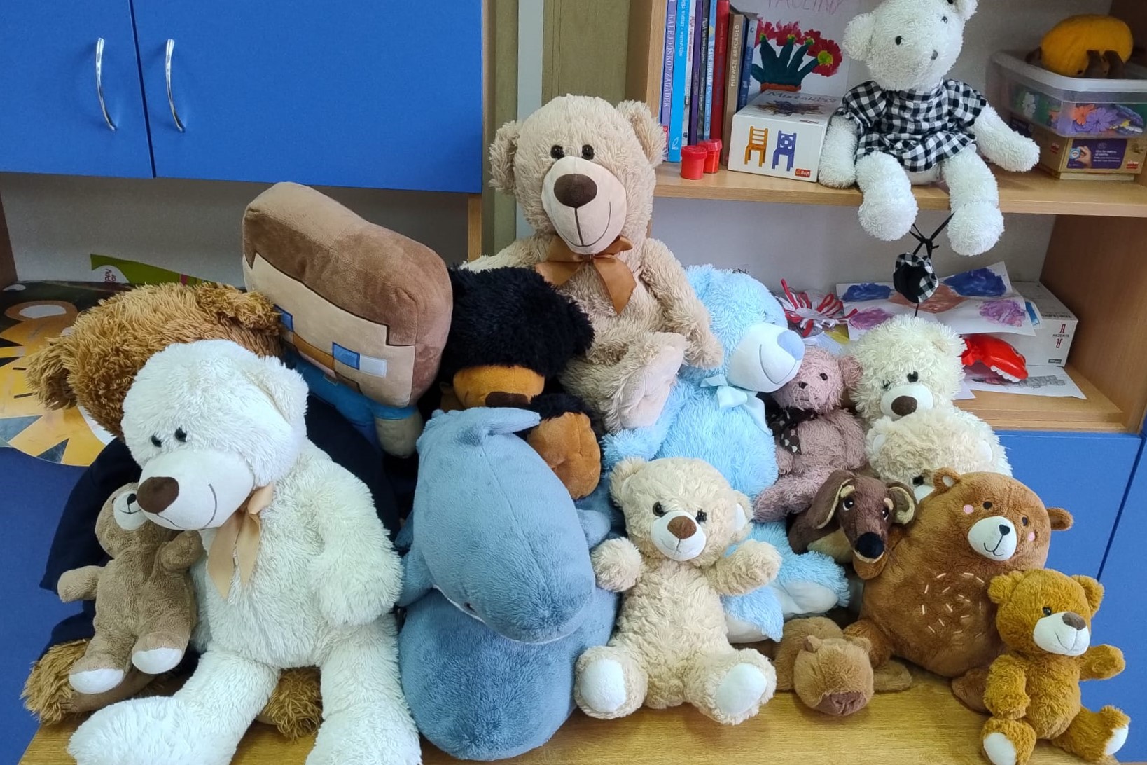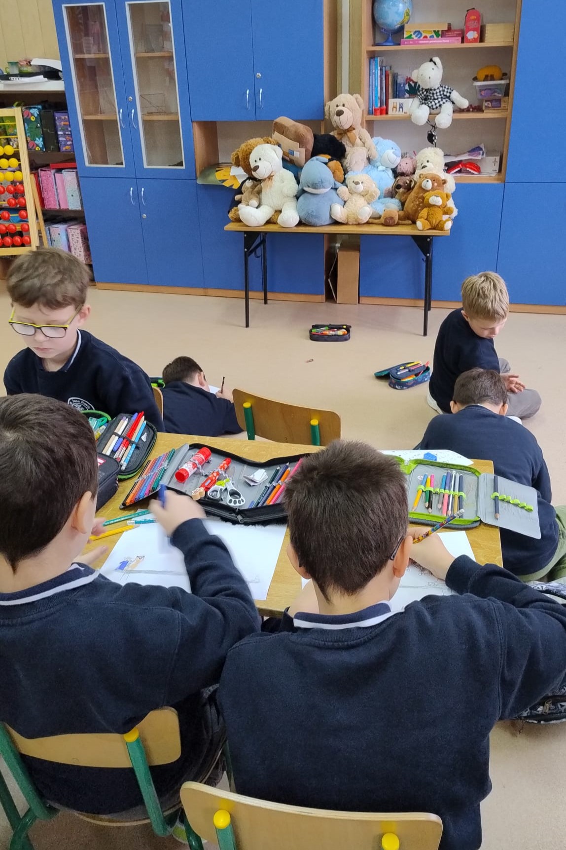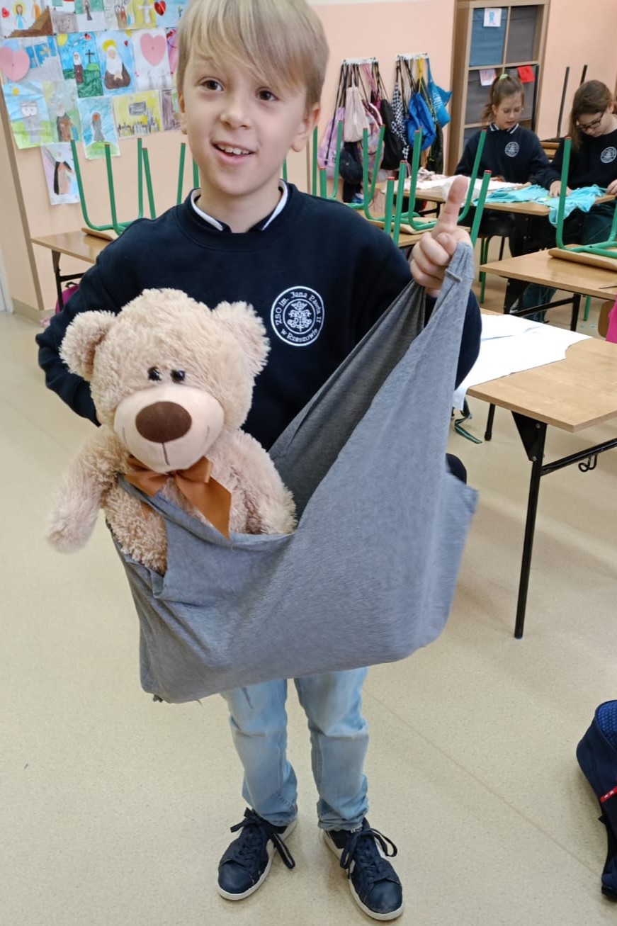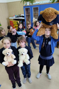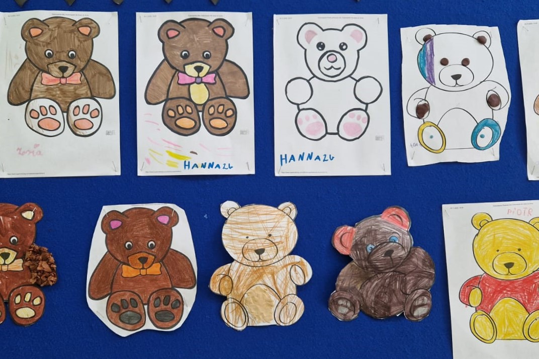 Najpierw obejrzeliśmy film o tym, jak powstał pierwszy miś. Potem dzieci tworzyły własne „misiowe arcydzieła”, bawiły się ze swoimi pluszakami, odgadywały zagadki i z dumą opowiadały o ulubionych towarzyszach snu. Były też misiowe zadania matematyczne oraz wielkie emocje podczas konkursu na największego i najmniejszego misia.