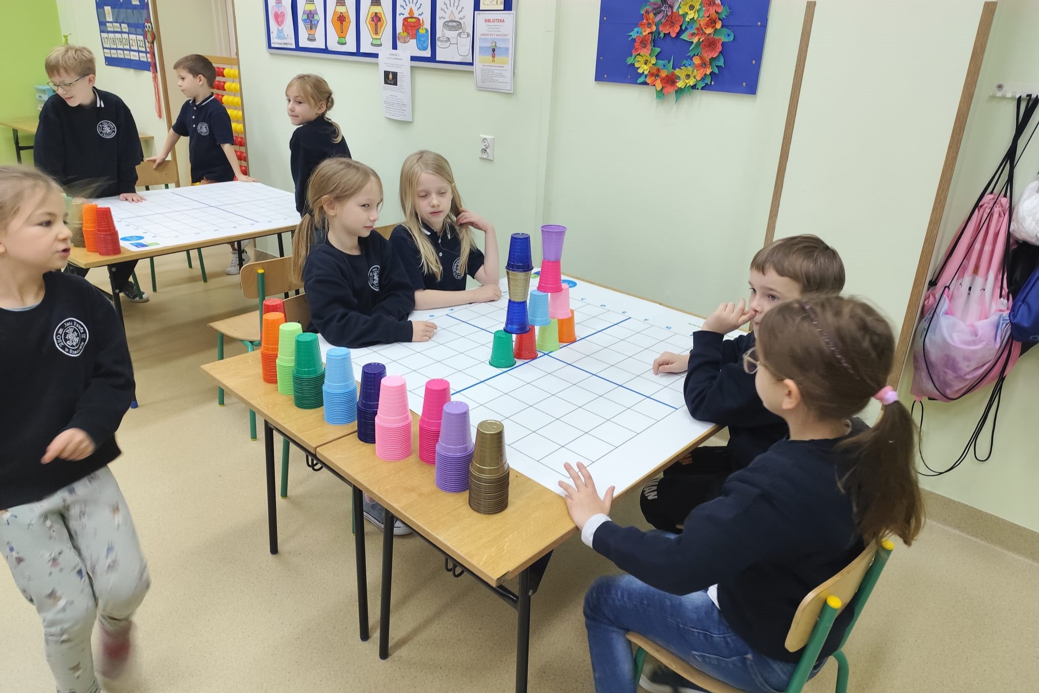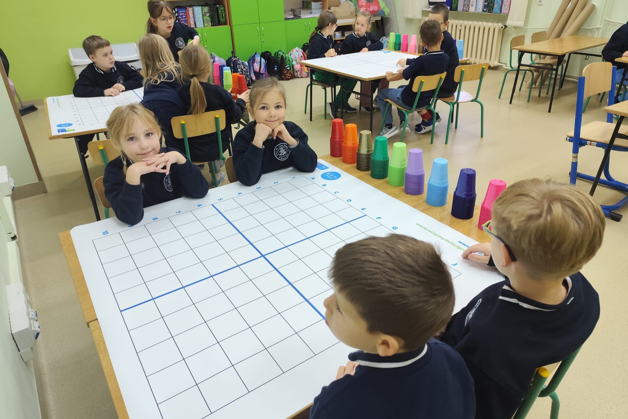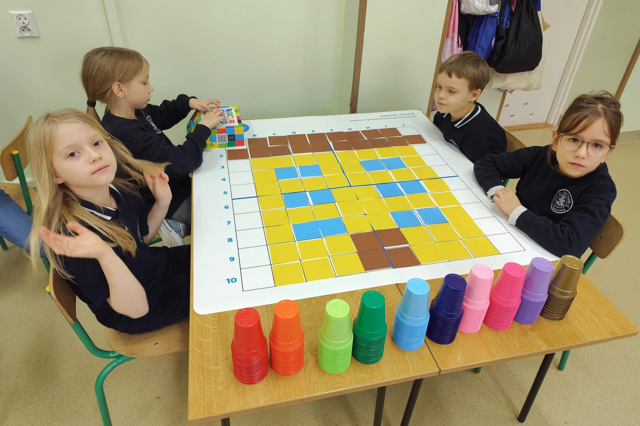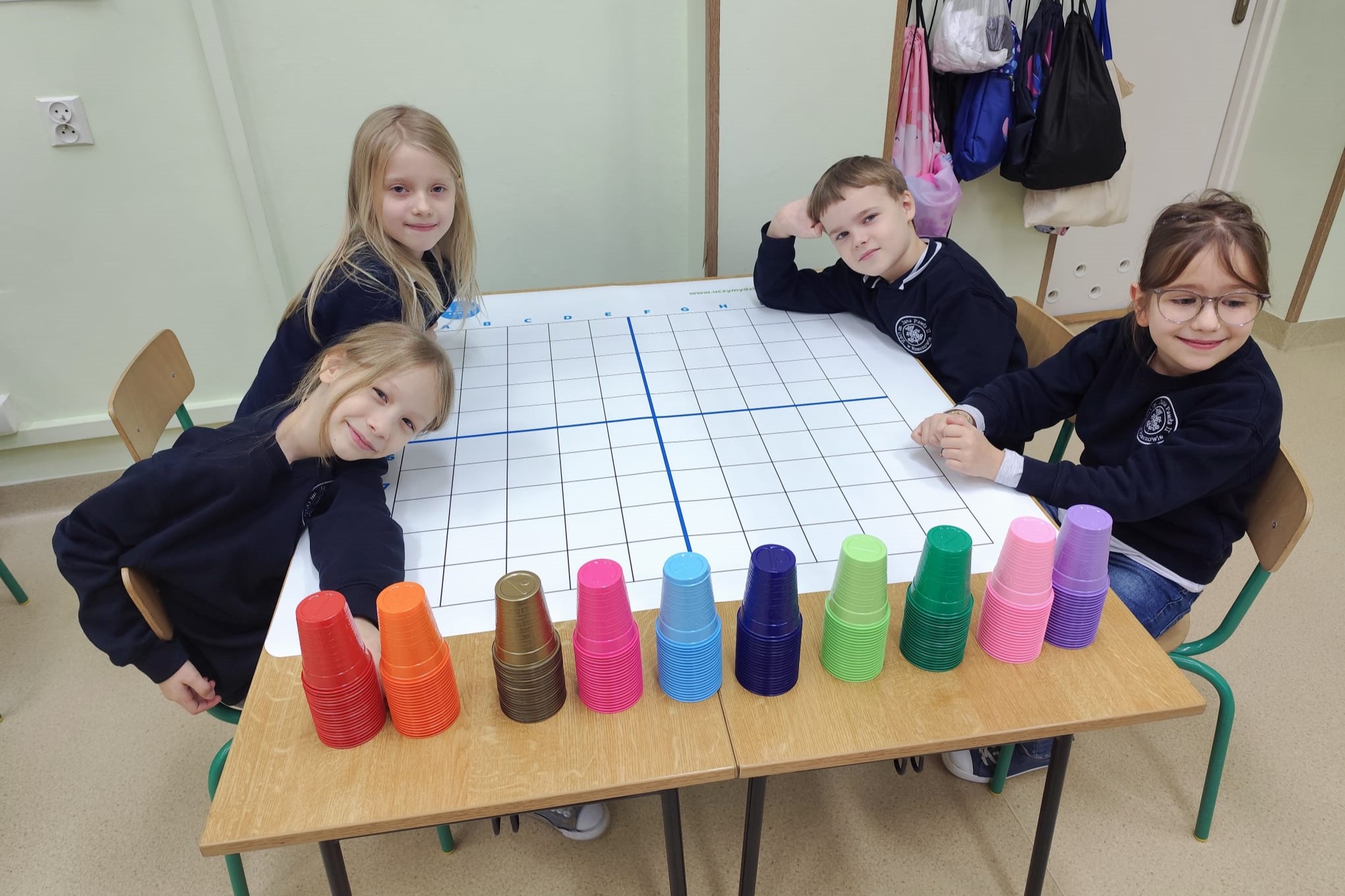 20 listopada 2025 r. w naszej Szkole odbyła się wyjątkowa lekcja kodowania w klasie 1a. Uczniowie pracowali z matami do kodowania, kolorowymi kubkami i kartonikami, dzięki którym w atrakcyjny i praktyczny sposób uczyli się logicznego myślenia oraz planowania kolejnych kroków.