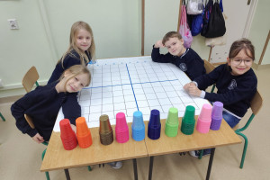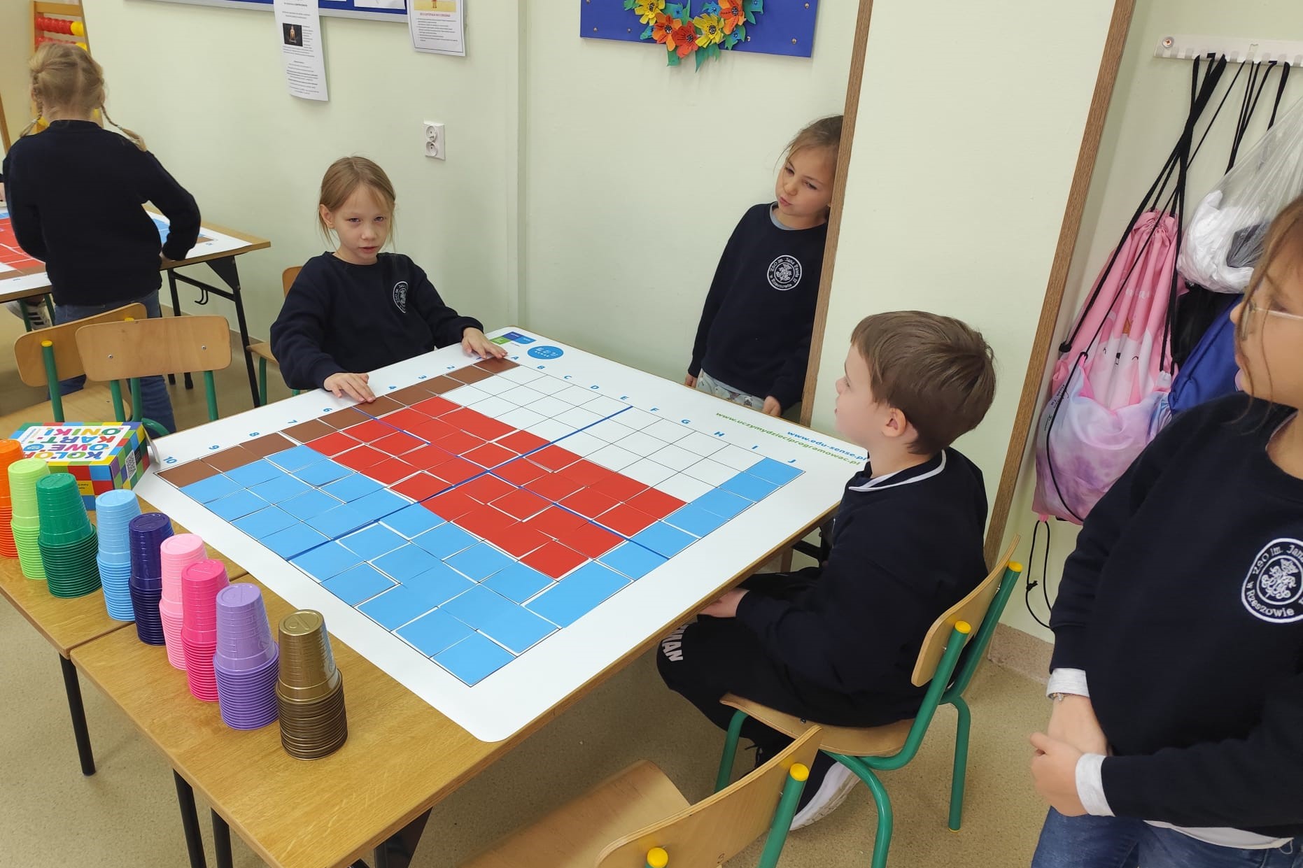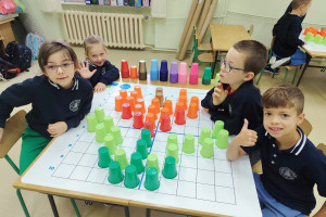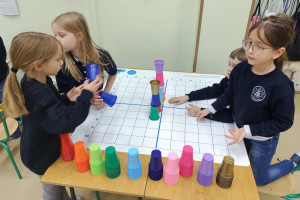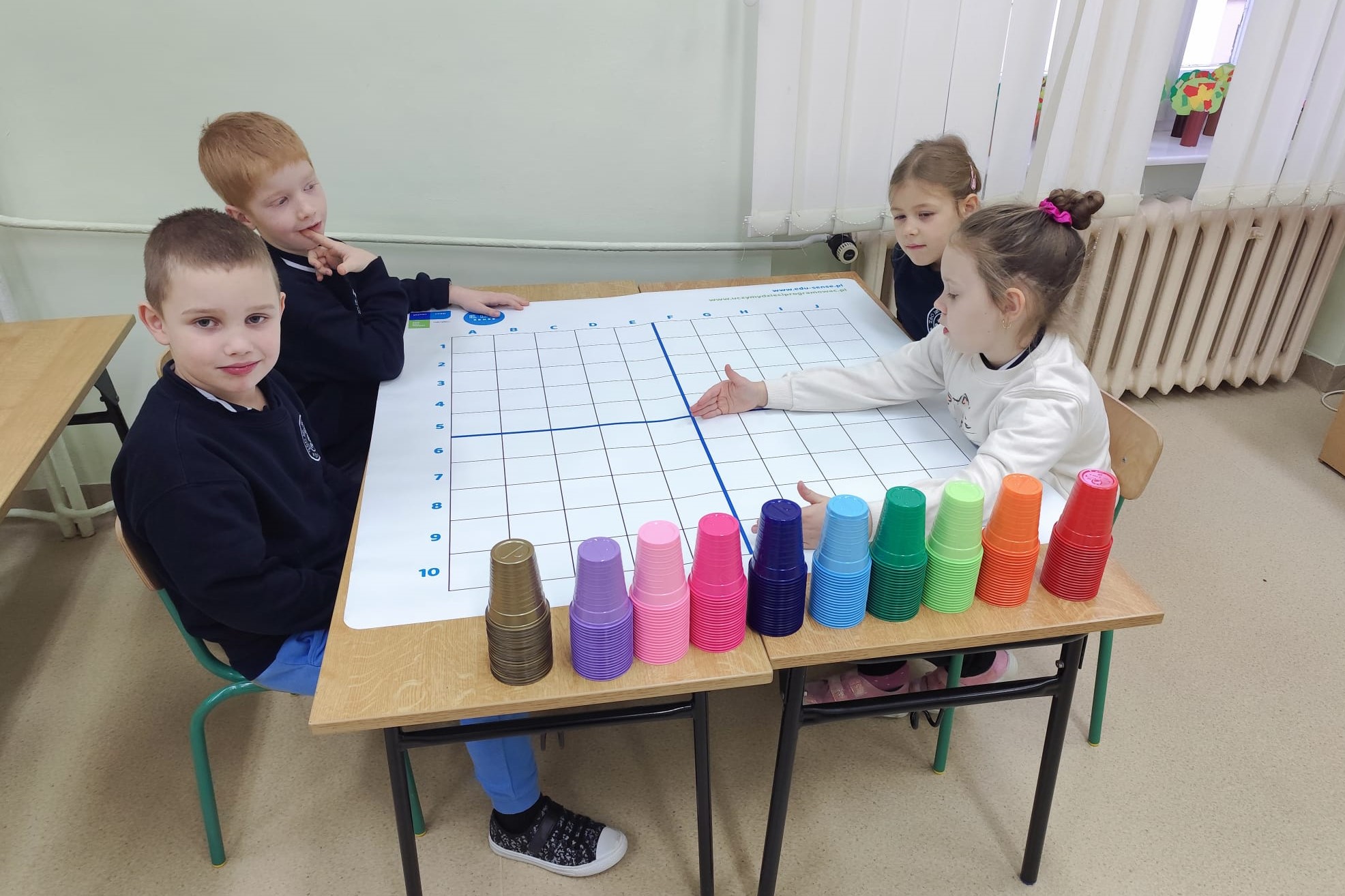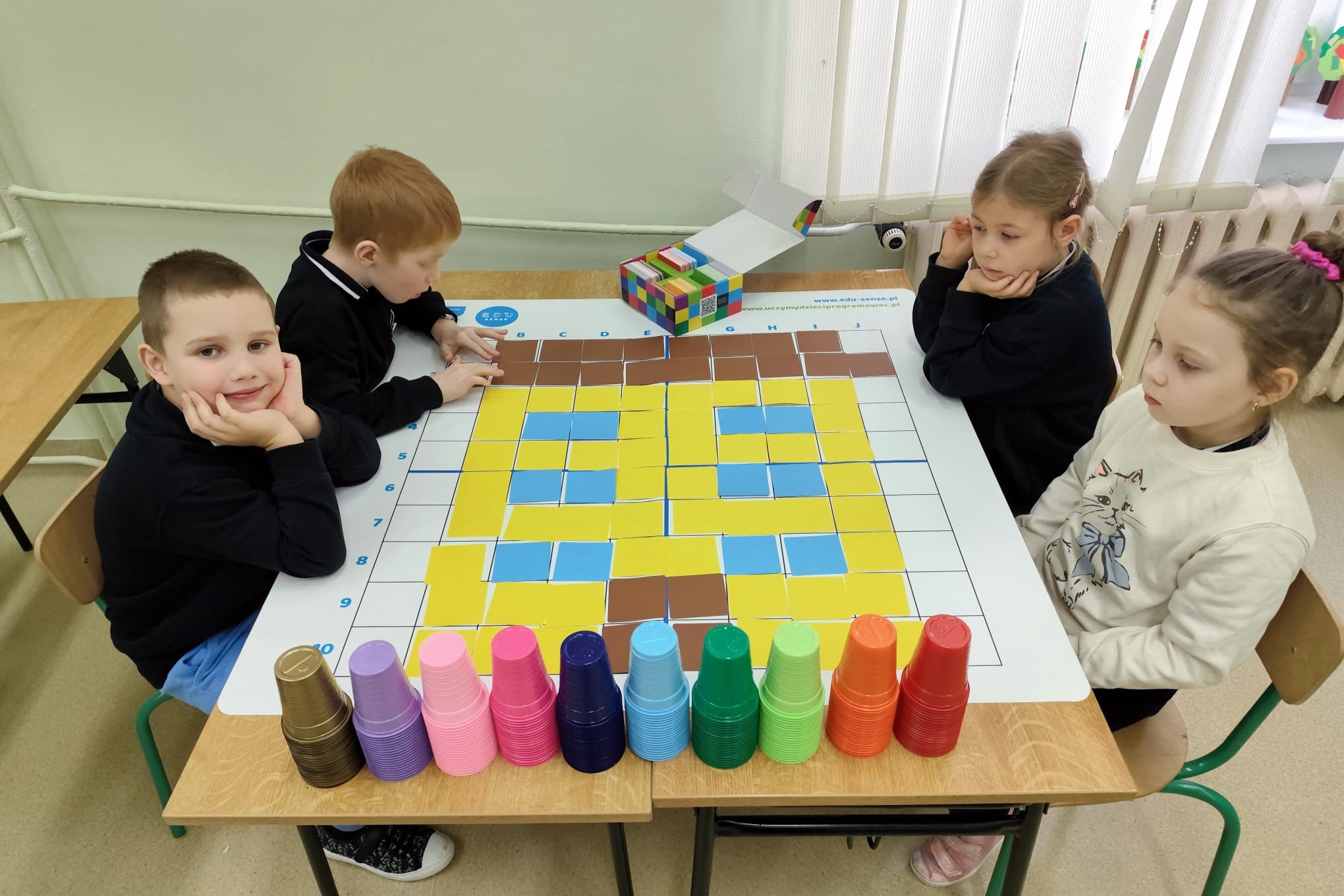 20 listopada 2025 r. w naszej Szkole odbyła się wyjątkowa lekcja kodowania w klasie 1a. Uczniowie pracowali z matami do kodowania, kolorowymi kubkami i kartonikami, dzięki którym w atrakcyjny i praktyczny sposób uczyli się logicznego myślenia oraz planowania kolejnych kroków.