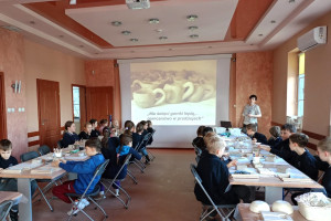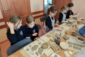 Na początku uczniowie uczestniczyli w krótkim wprowadzeniu dotyczącym historii garncarstwa. Dowiedzieli się, jak powstawały naczynia w pradziejach, kim byli dawni garncarze oraz jakich narzędzi używali. Dzieci miały okazję obejrzeć przykłady pradawnej ceramiki i poznać ciekawostki związane z życiem ludzi w dawnych epokach.