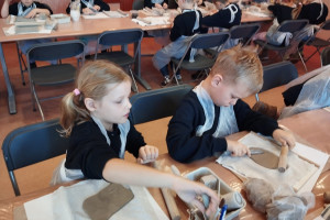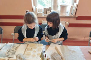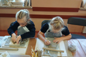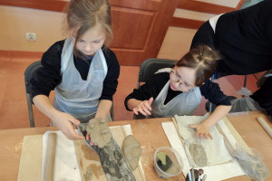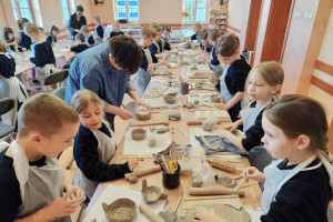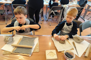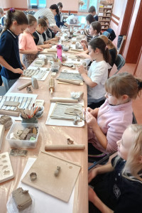 Największą atrakcją warsztatów była część praktyczna, podczas której każdy uczeń mógł samodzielnie ulepić własną pracę z gliny. Powstały m.in. miseczki, figurki, ozdobne płytki oraz inne kreatywne formy. Uczniowie z ogromnym zaangażowaniem odkrywali możliwości plastyczne gliny, rozwijając przy tym swoje zdolności manualne i wyobraźnię.