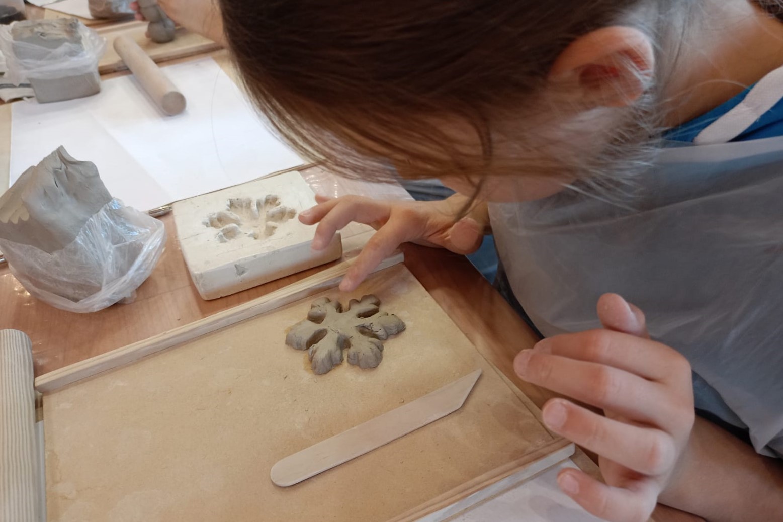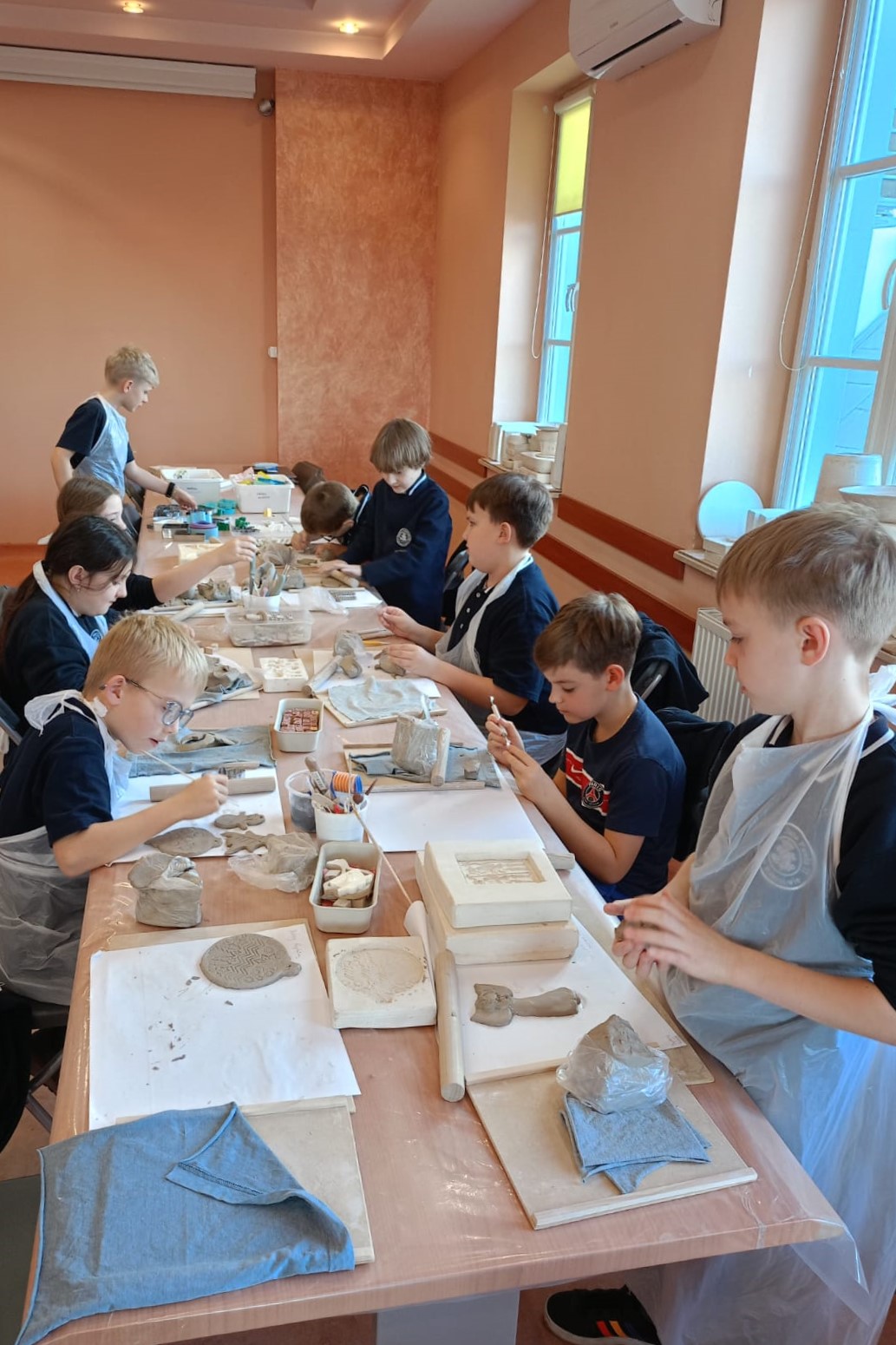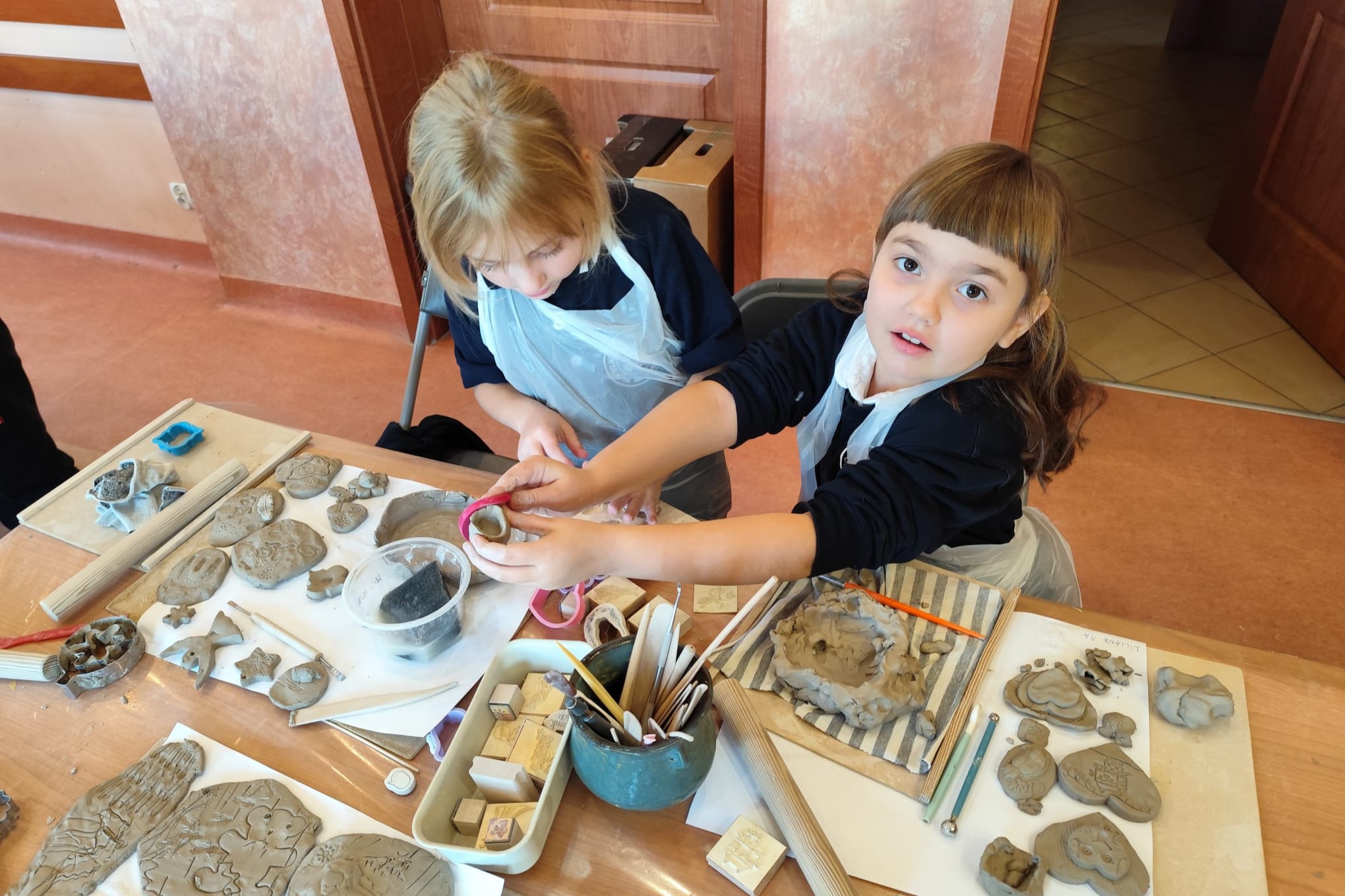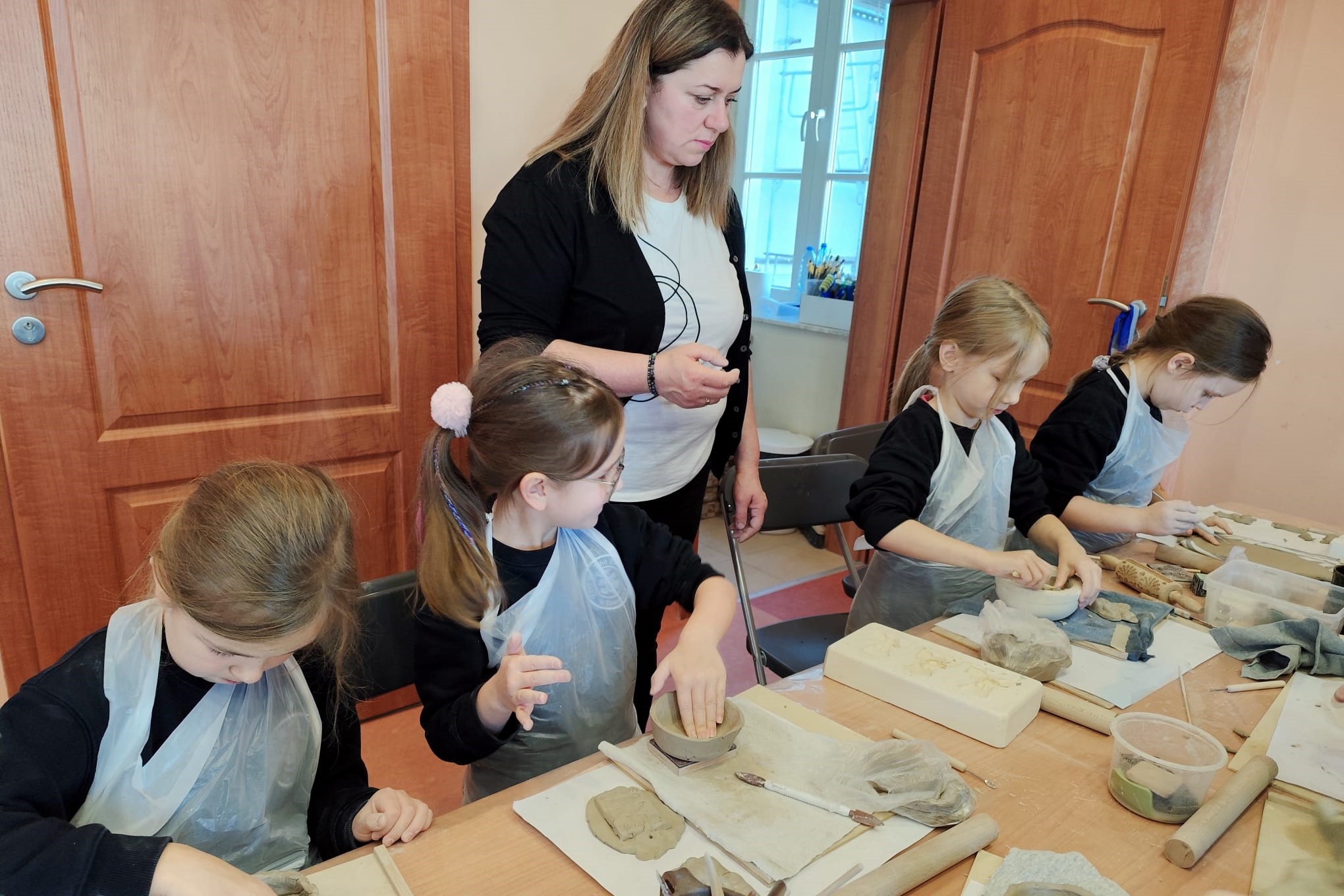 Największą atrakcją warsztatów była część praktyczna, podczas której każdy uczeń mógł samodzielnie ulepić własną pracę z gliny. Powstały m.in. miseczki, figurki, ozdobne płytki oraz inne kreatywne formy. Uczniowie z ogromnym zaangażowaniem odkrywali możliwości plastyczne gliny, rozwijając przy tym swoje zdolności manualne i wyobraźnię.