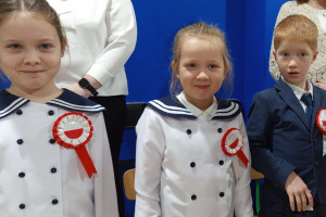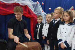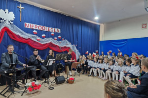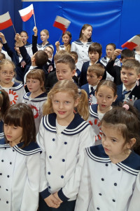 Sala gimnastyczna została pięknie udekorowana, a uczniowie przyszli ubrani odświętnie, z przypiętymi biało-czerwonymi kotylionami. Uroczystość rozpoczęła się wspólnym odśpiewaniem „Mazurka Dąbrowskiego”, któremu poświęcono szczególną uwagę podczas całego spotkania.