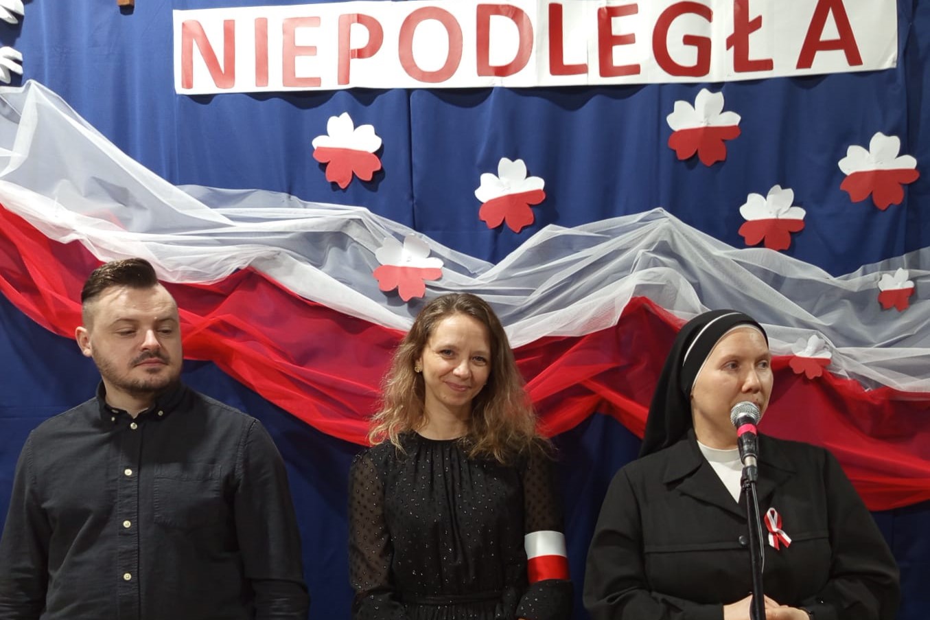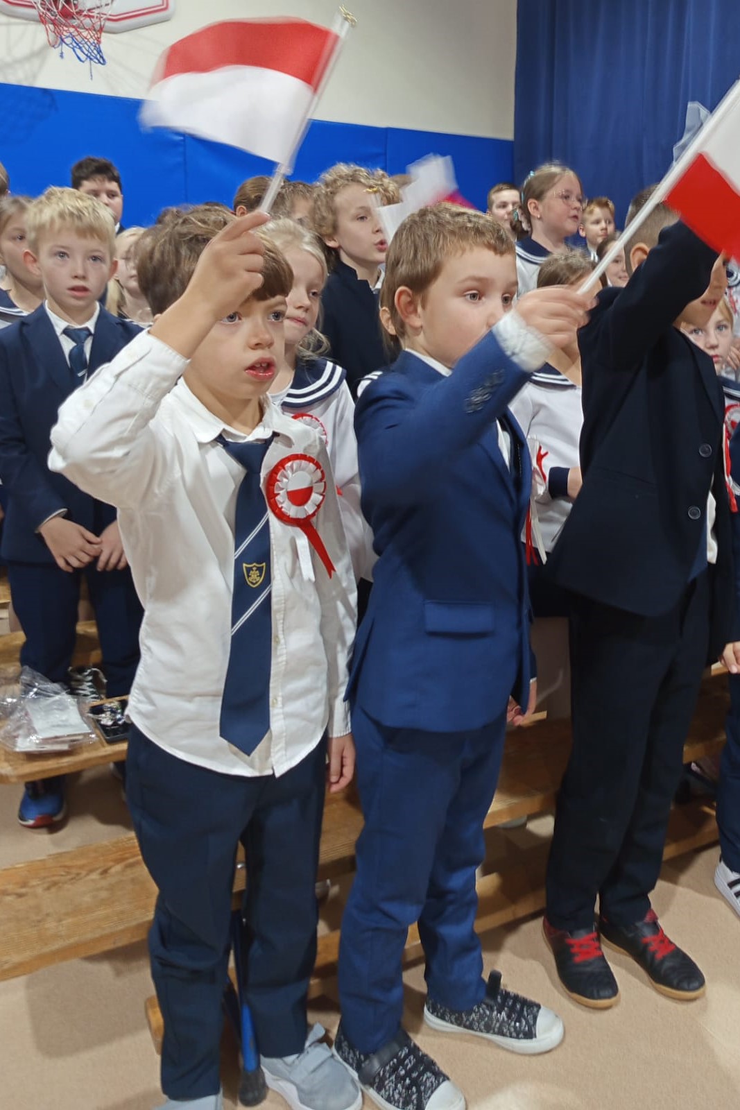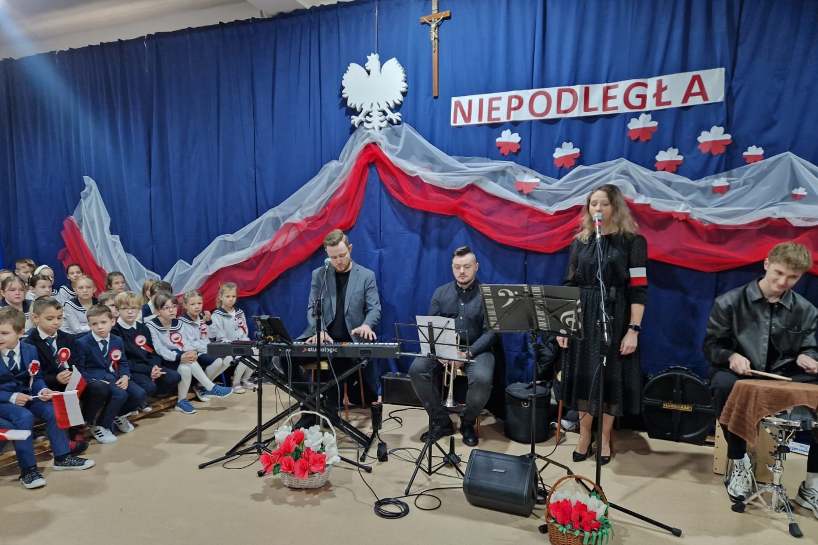 Sala gimnastyczna została pięknie udekorowana, a uczniowie przyszli ubrani odświętnie, z przypiętymi biało-czerwonymi kotylionami. Uroczystość rozpoczęła się wspólnym odśpiewaniem „Mazurka Dąbrowskiego”, któremu poświęcono szczególną uwagę podczas całego spotkania.