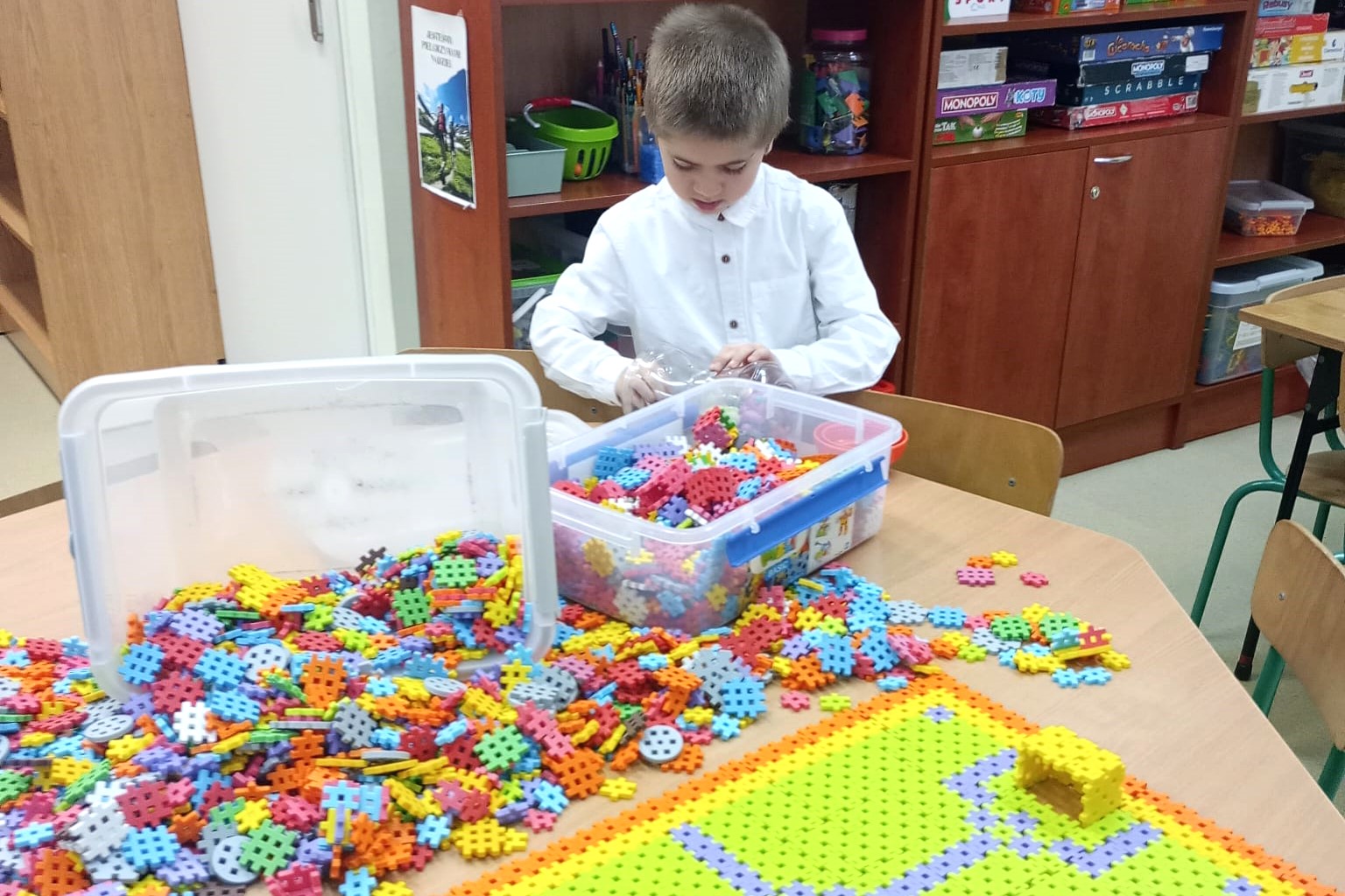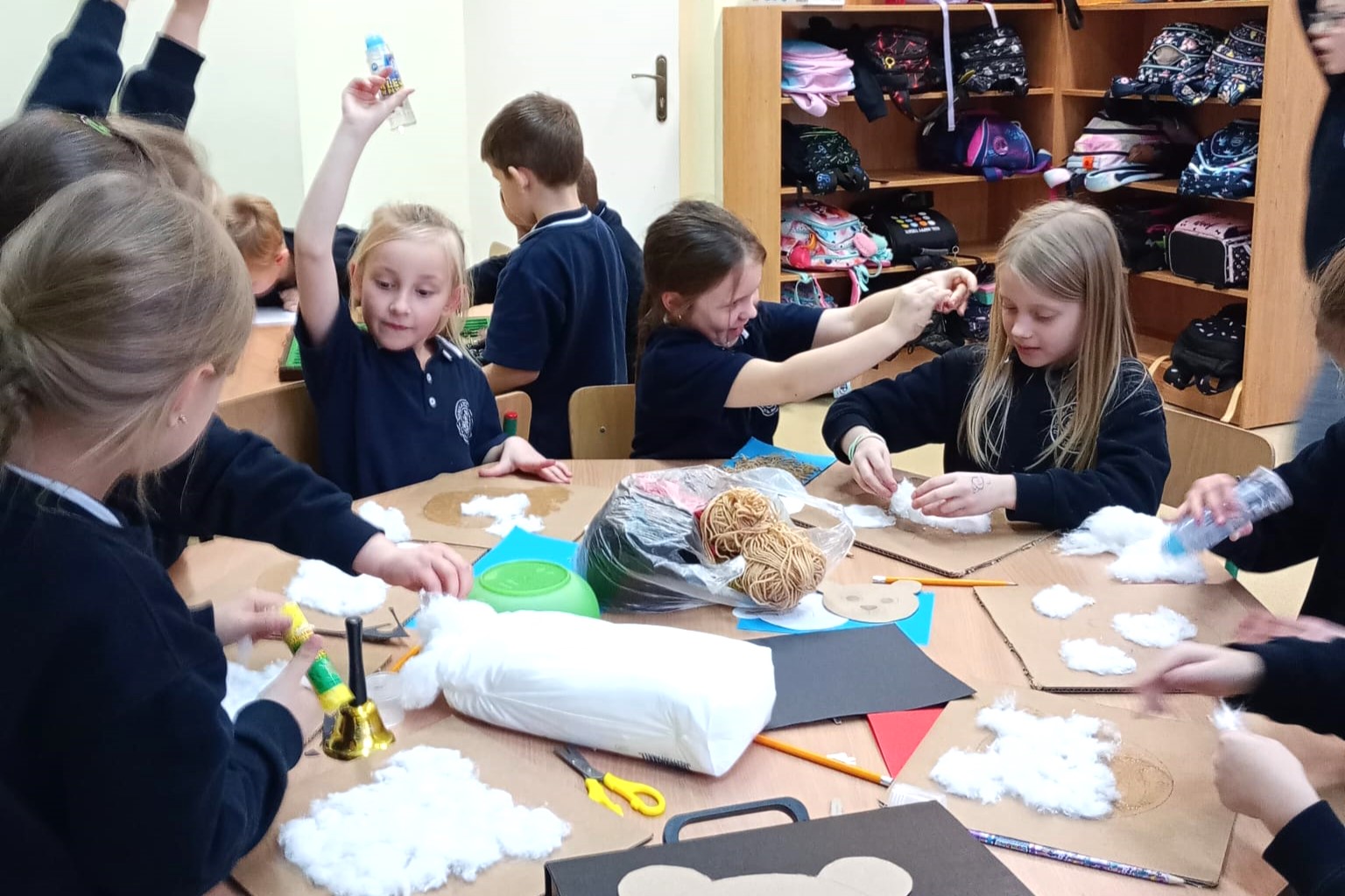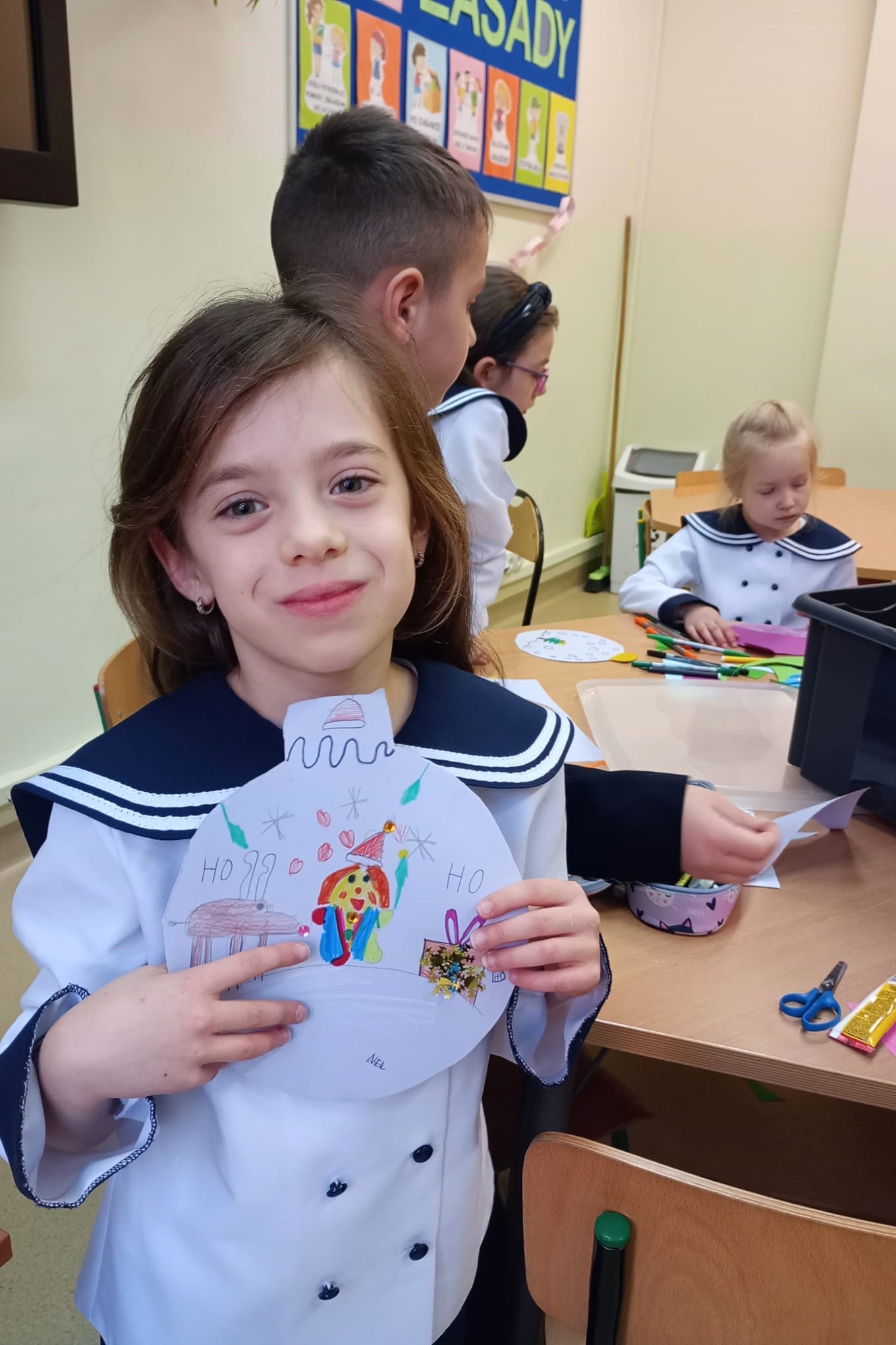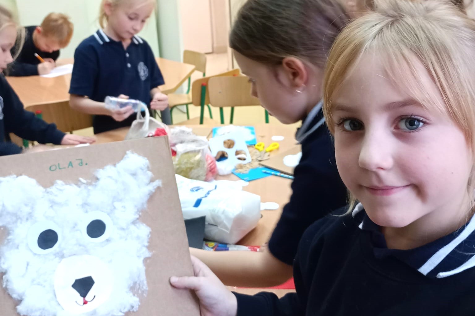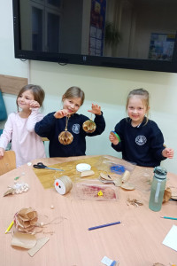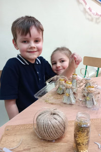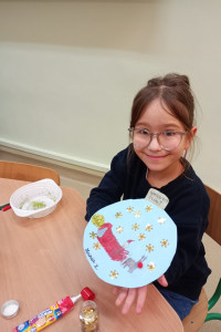 Grudniowe zajęcia w świetlicy szkolnej odbywały się w radosnej, świątecznej atmosferze. Dzieci z zaangażowaniem przygotowywały prace i dekoracje na kiermasz bożonarodzeniowy, rozwijając swoją kreatywność i ucząc się współpracy. Działania plastyczne przeplatane były zabawami integracyjnymi, które sprzyjały dobrej zabawie i budowaniu relacji.