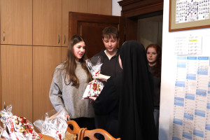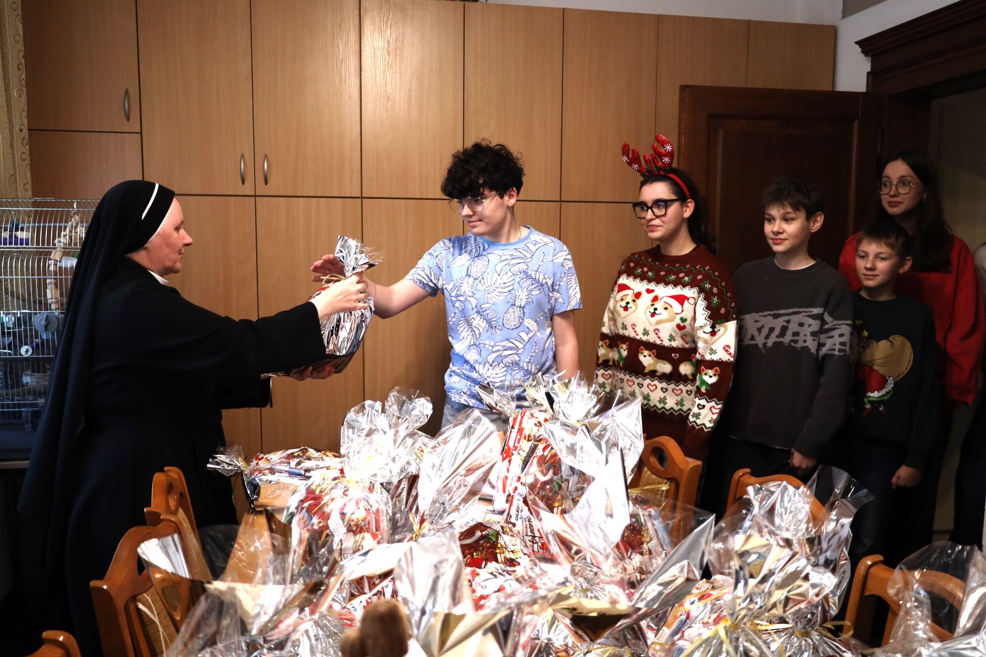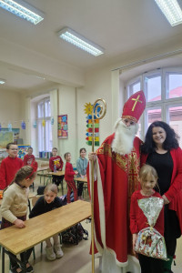 W murach Szkoły pojawił się również św. Mikołaj. Ze względu na liczne obowiązki zdążył spotkać się tylko z częścią uczniów i nauczycieli, jednak dla pozostałych pozostawił prezenty u Siostry Dyrektor, która przekazywała je adresatom.