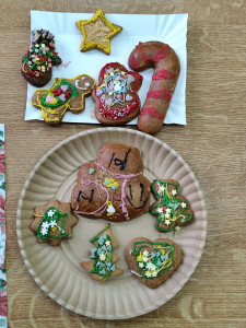10 grudnia 2025 r. w klasie 1a SP zrobiło się wyjątkowo świątecznie. Uczniowie podczas zajęć edukacji społecznej dekorowali pierniczki. Dzieci z zapałem ozdabiały słodkie wypieki kolorowymi pisakami i posypkami. Zajęcia dostarczyły nie tylko wiele radości, ale także pozwoliły ćwiczyć kreatywność oraz zdolności manualne. Gotowe pierniczki prezentowały się pięknie, a zapach zbliżających się Świąt Bożego Narodzenia roznosił się po Szkole.