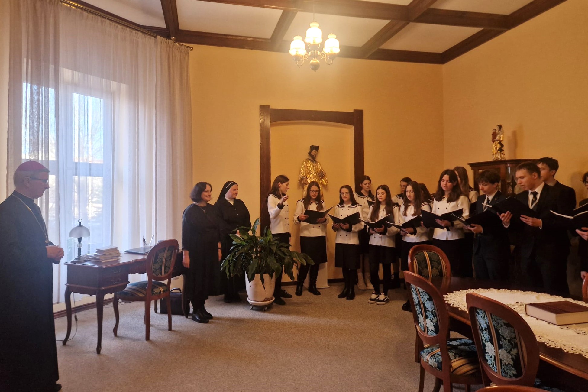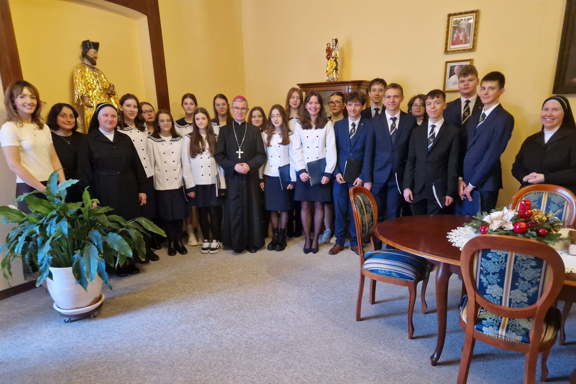 17 grudnia 2025 r. delegacja naszej Szkoły złożyła Księdzu Biskupowi Janowi Wątrobie oraz Księdzu Biskupowi Edwardowi Białogłowskiemu życzenia z okazji zbliżających się Świąt Bożego Narodzenia.