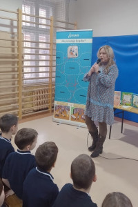 8 stycznia 2026 r. gościliśmy w Szkole Podstawowej panią Lidię Miś – autorkę książek i bajek dla dzieci. Pisarka w niezwykle ciekawy sposób zaprezentowała swoją twórczość, opowiadając uczniom historie, które stały się inspiracją do powstania jej książek.