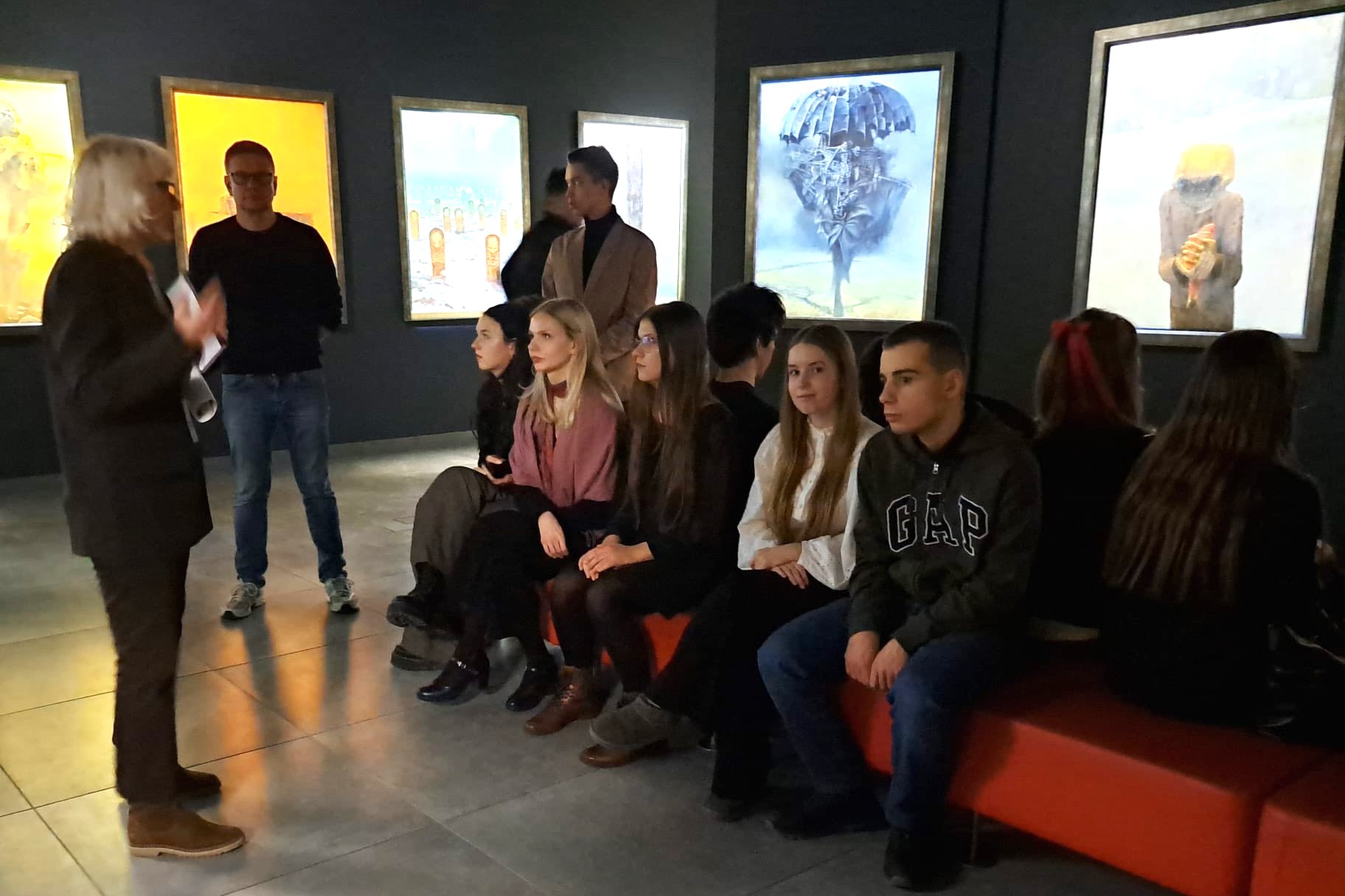 Następnie uczniowie wzięli udział w oprowadzaniu kuratorskim po wystawie obrazów Zdzisława Beksińskiego w Nowohuckim Centrum Kultury.