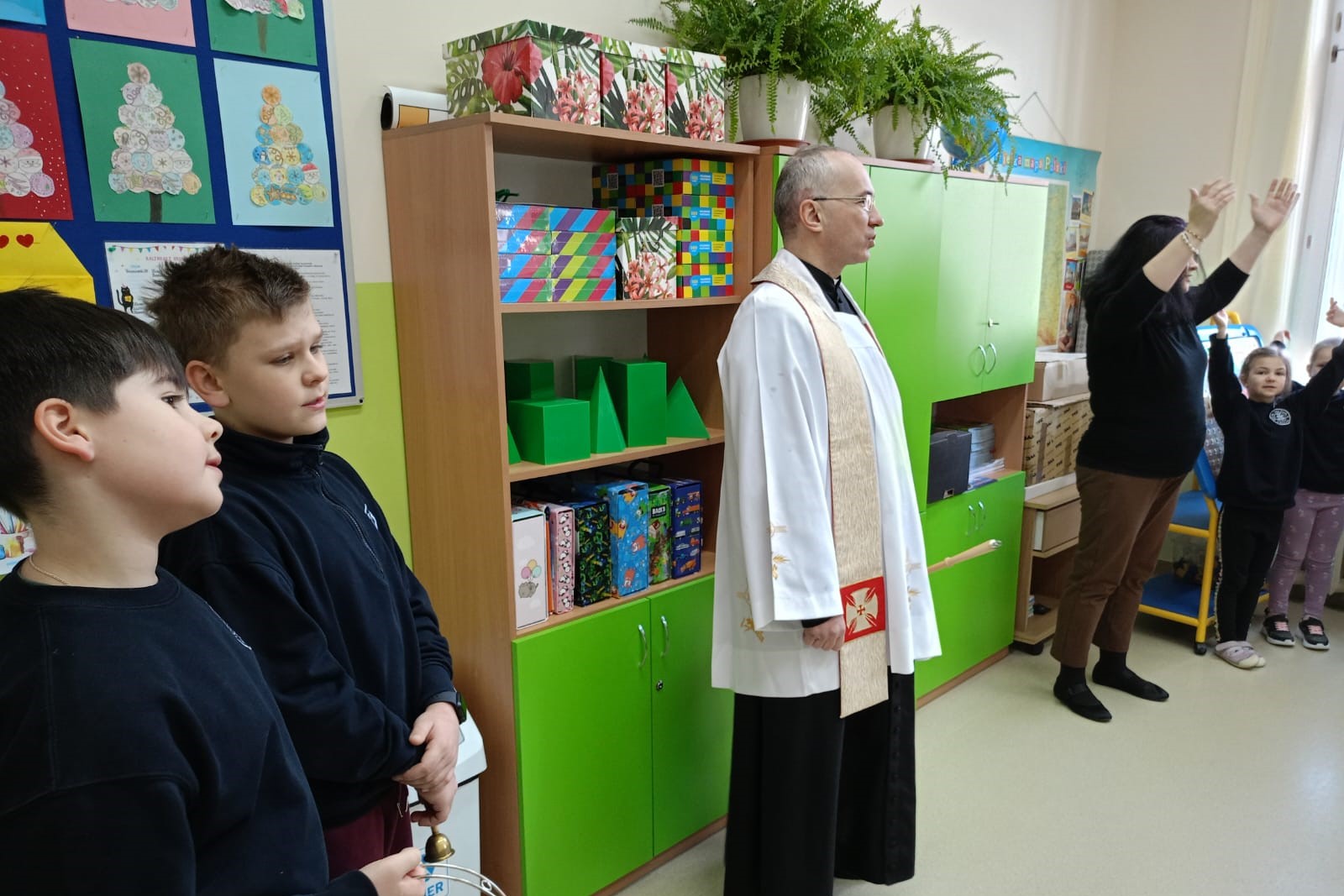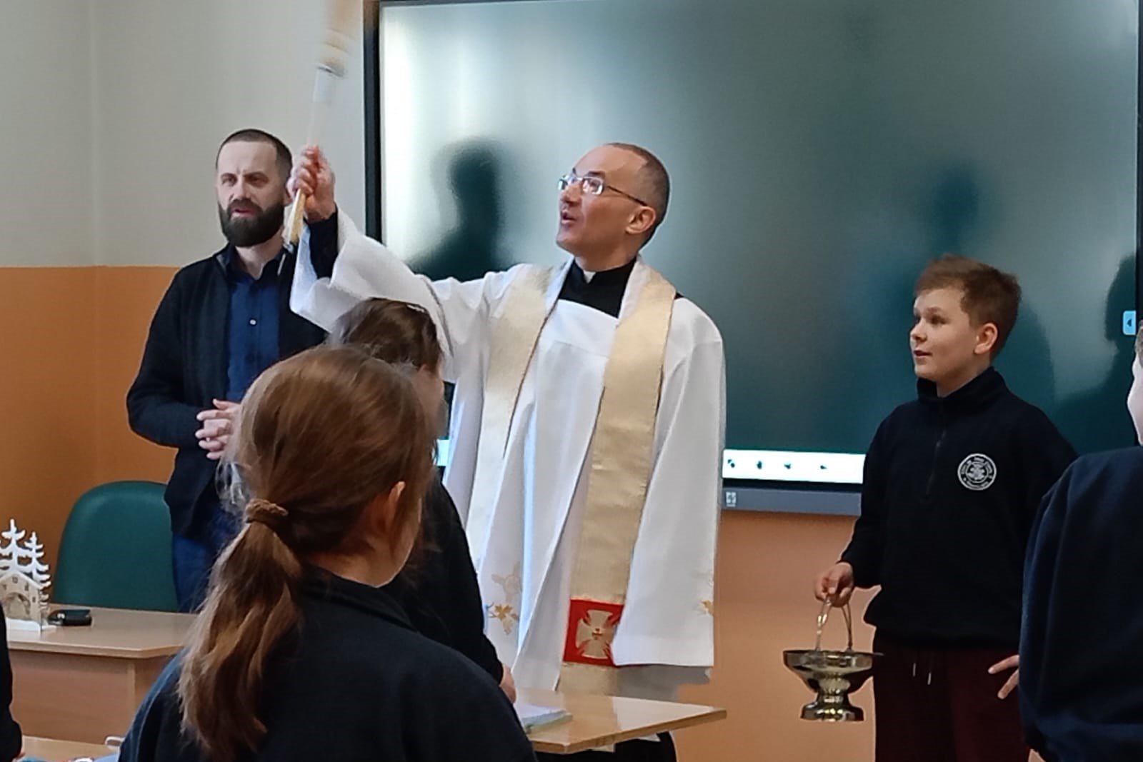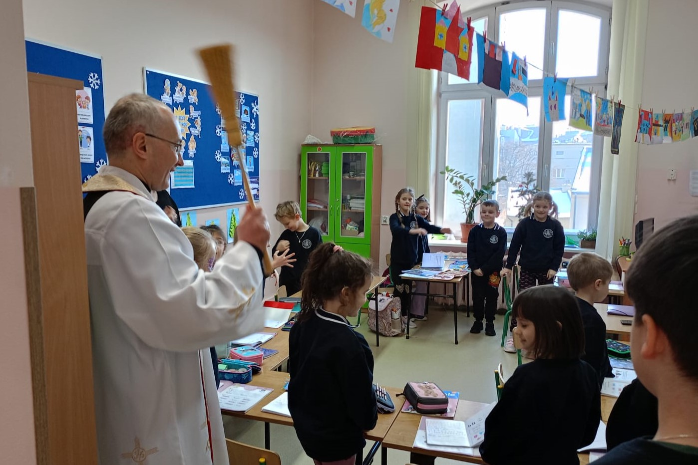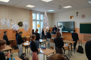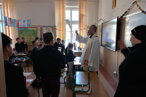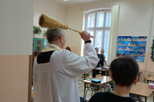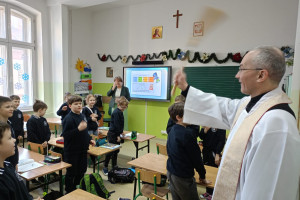 20 stycznia 2026 r. Szkołę Podstawową przy ul. Lisa-Kuli 13 odwiedził ks. Grzegorz Wójcik z wizytą duszpasterską, która była okazją do wspólnej modlitwy i poświęcenia sal lekcyjnych. Duchowe błogosławieństwo było wyrazem troski o dobro uczniów, nauczycieli oraz wszystkich pracowników Szkoły.