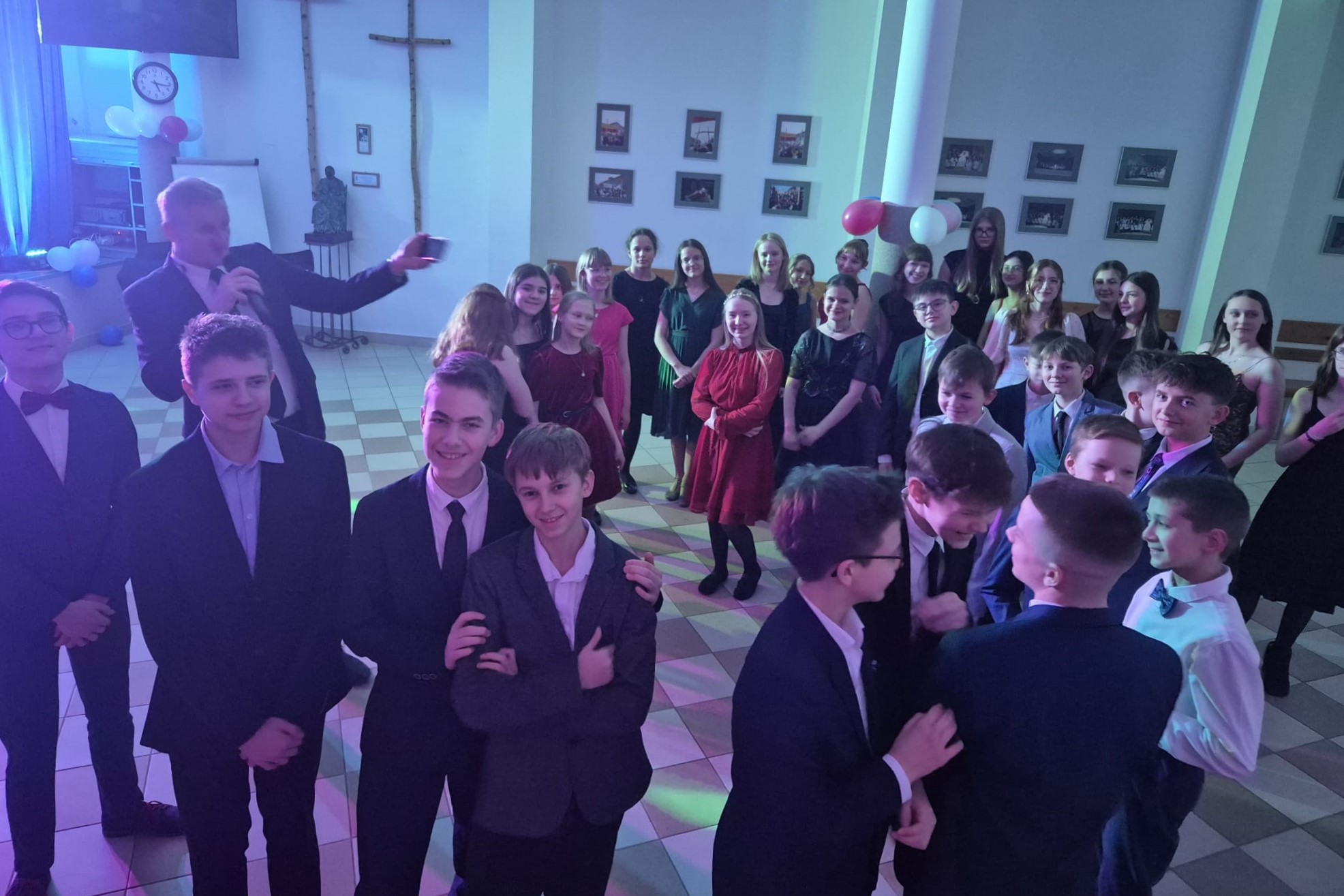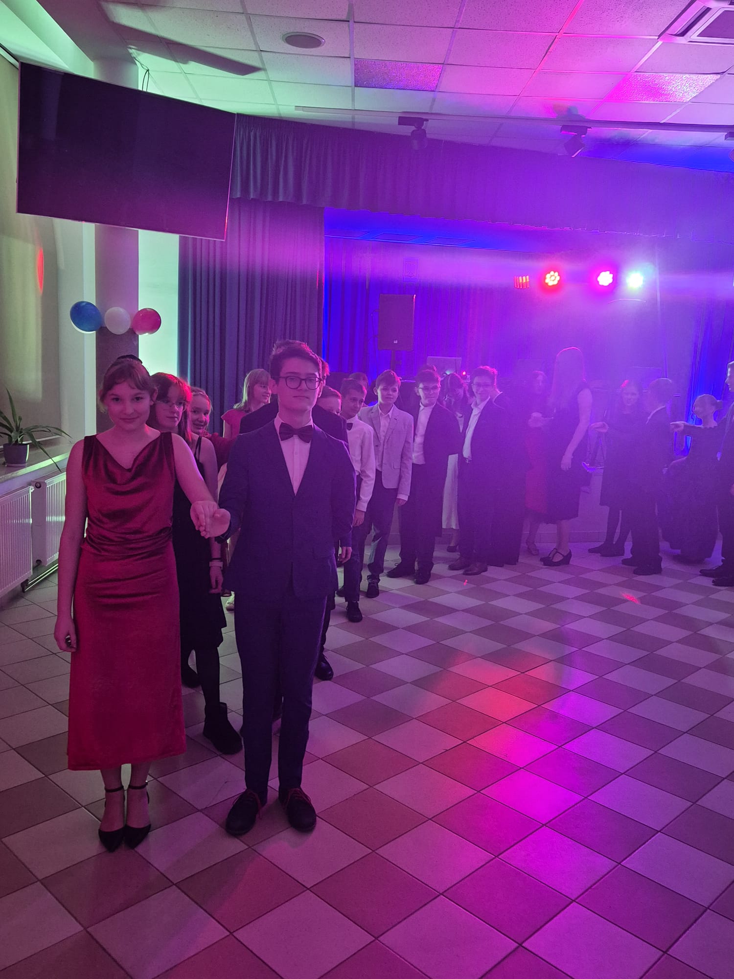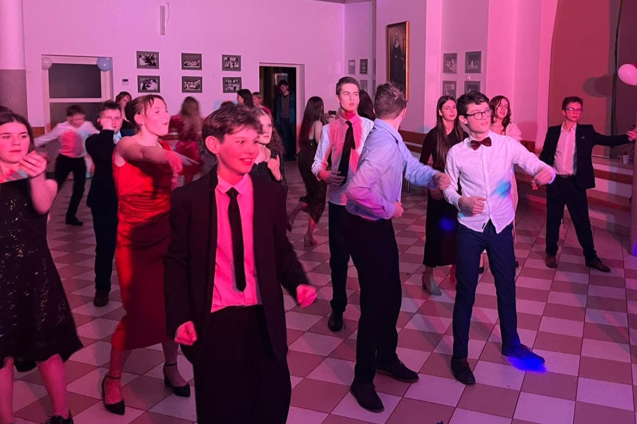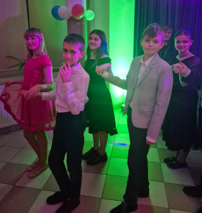 12 lutego 2026 r., w godzinach wieczornych, odbył się w naszej Szkole bal karnawałowy klas 6-8 Szkoły Podstawowej. Wydarzenie zgromadziło liczne grono młodzieży, która z entuzjazmem włączyła się we wspólną zabawę. Uczestnicy zaprezentowali się w eleganckich strojach, podkreślając wyjątkowy charakter tego wieczoru. O oprawę muzyczną i doskonałą atmosferę zadbał niezrównany pan Tomasz Januszewski, który z energią i poczuciem humoru prowadził taneczne animacje. Dzięki jego zaangażowaniu parkiet przez cały wieczór pozostawał pełen tańczących uczestników.