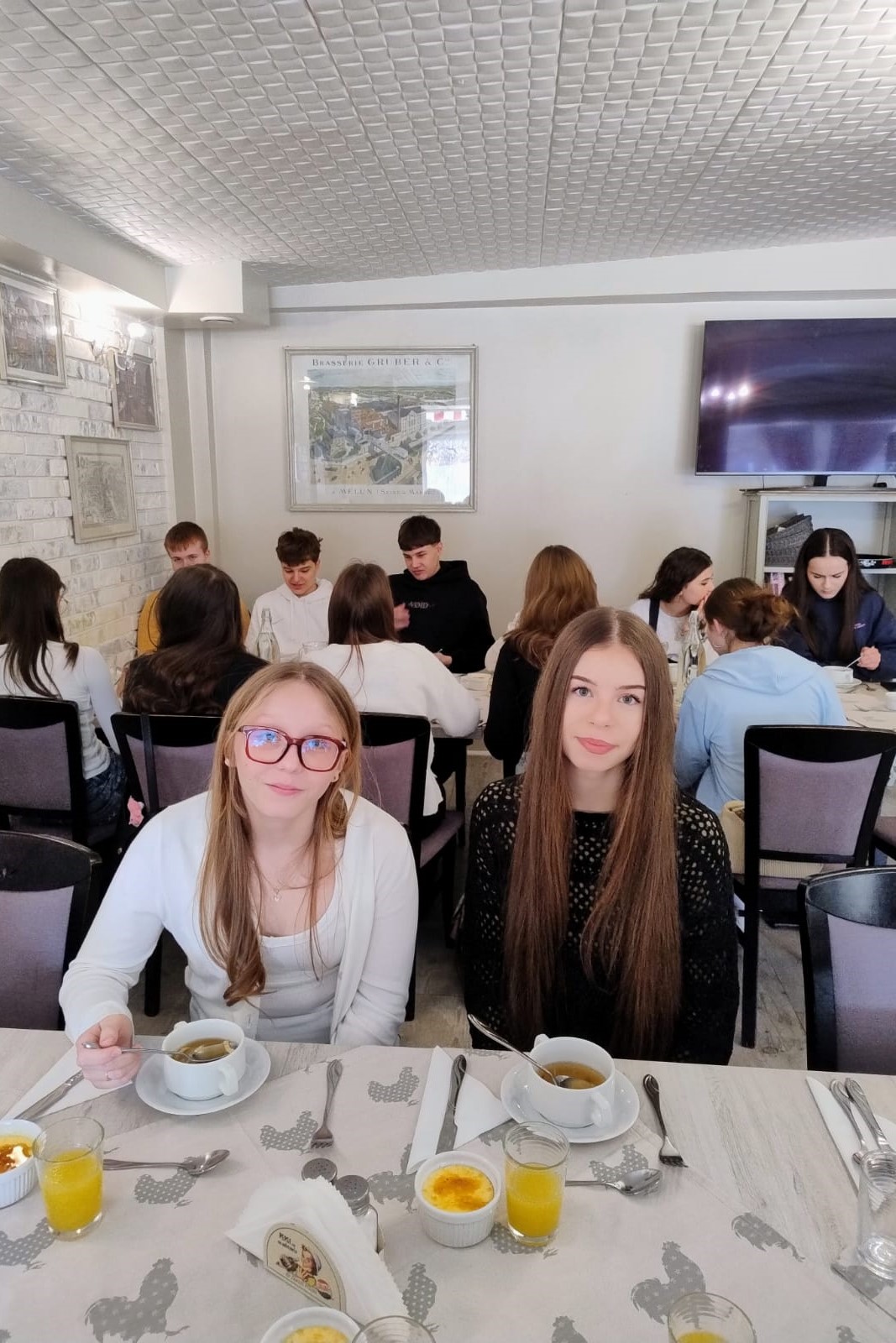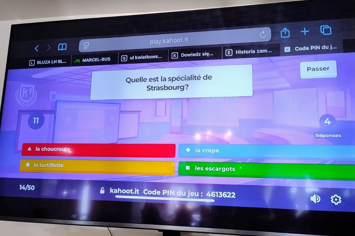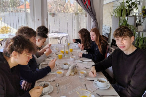 11 marca 2026 r. grupa uczniów naszego Liceum pod opieką p. Wioletty Jagieły wyruszyła w kulinarno-kulturalną podróż po Francji! W ramach obchodów Międzynarodowego Dnia Języka Francuskiego uczestnicy połączyli przyjemne z pożytecznym – najpierw zasmakowali klasyki kuchni francuskiej w Restauracji Republiki Polsko-Francuskiej: quiche, rosół galicyjski podany z naleśnikiem i deser crème brûlée.