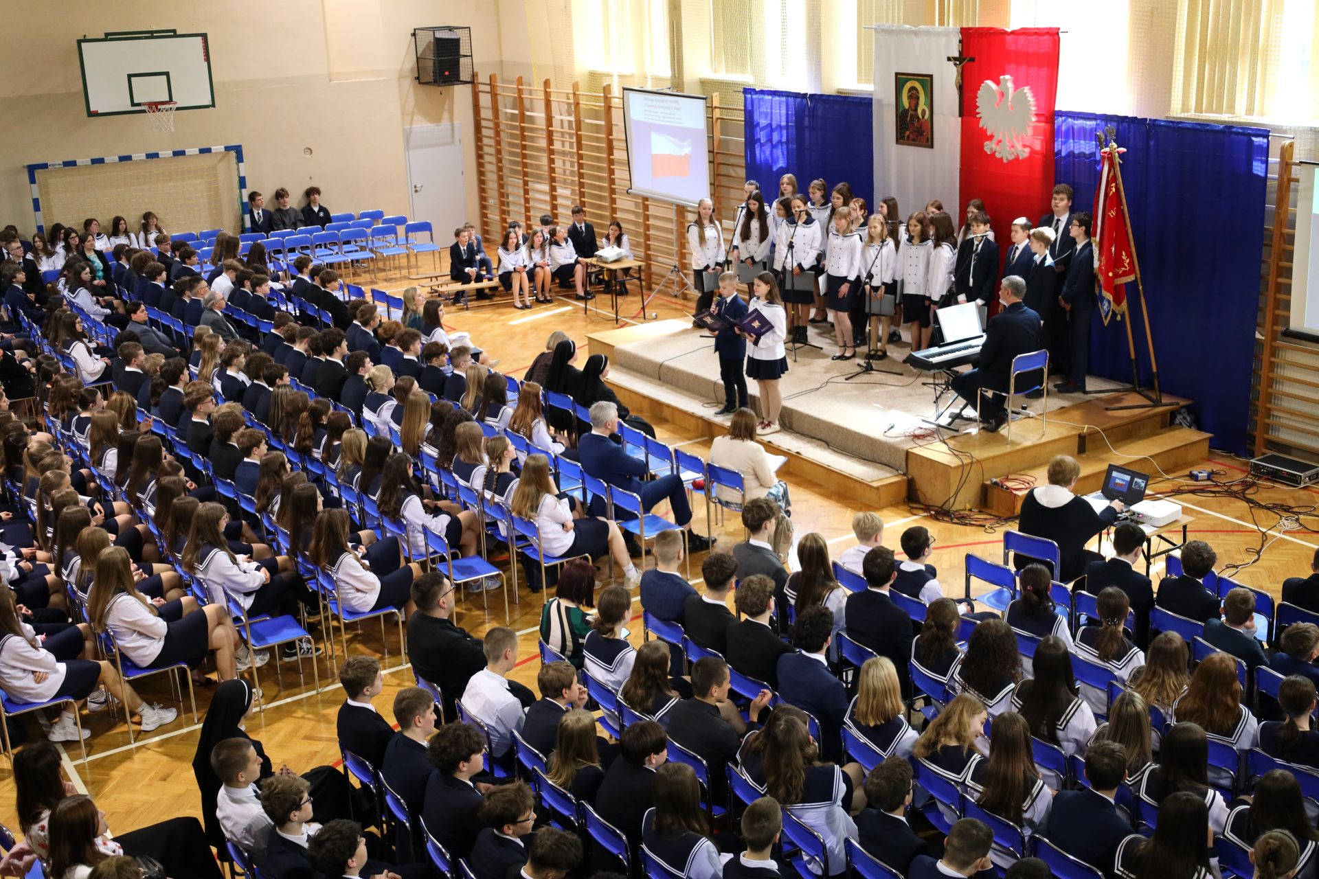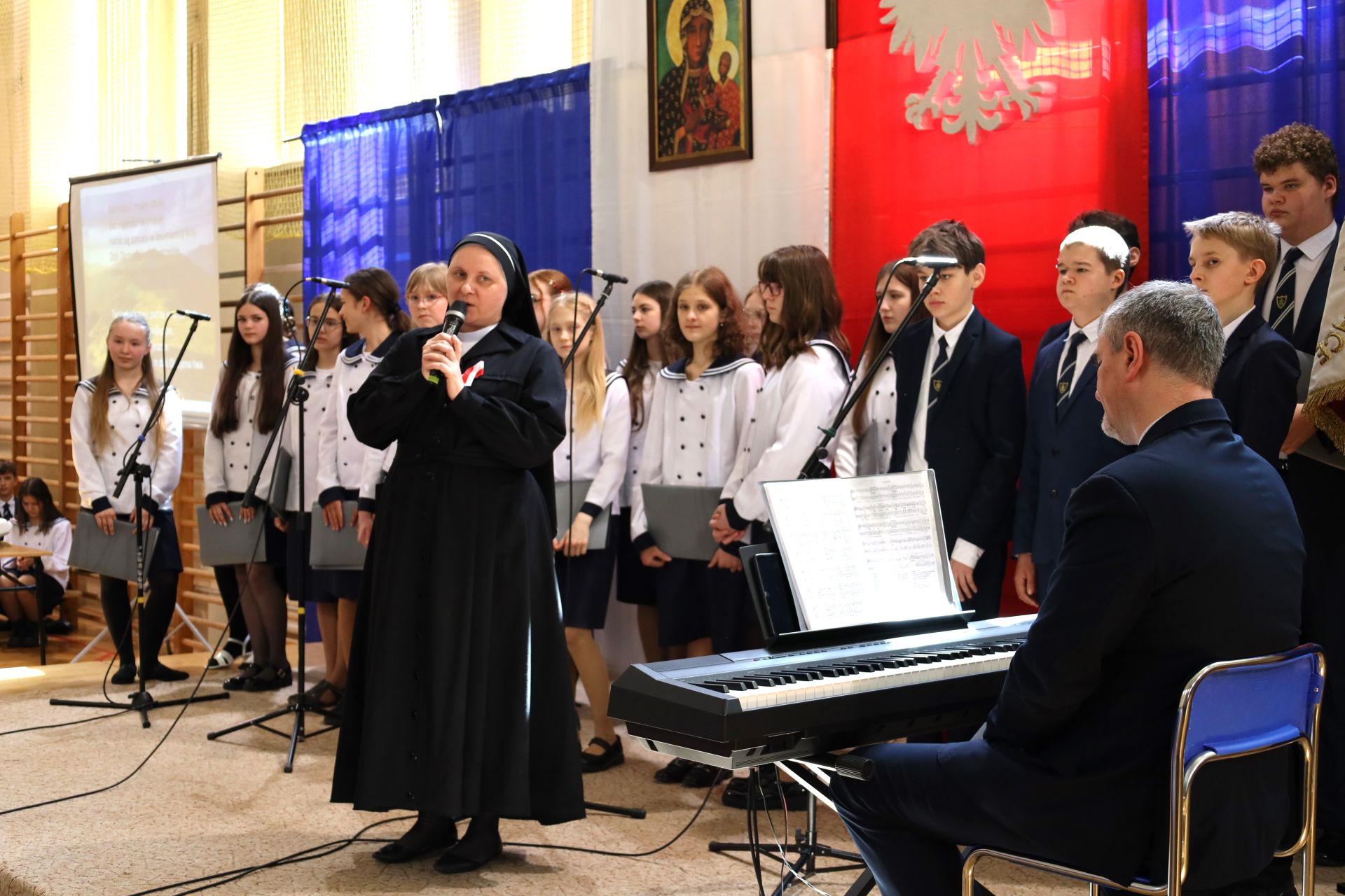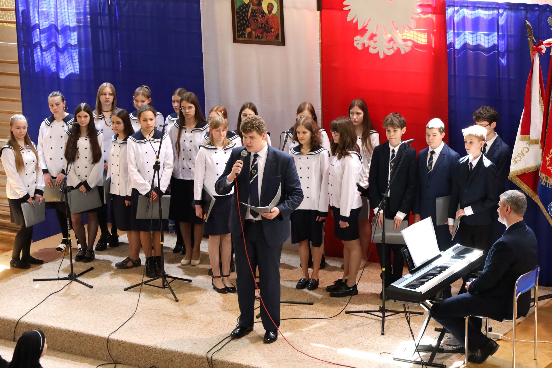 Szczególnego charakteru wydarzeniu nadał niezastąpiony chór klas starszych Szkoły Podstawowej, którego występy – wzbogacone o znakomite wykonania solistów – poruszyły serca zgromadzonych i podkreśliły podniosłość chwili.