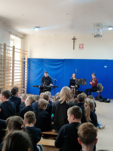 10 kwietnia 2026 r. uczniowie klas 1-3 naszej Szkoły Podstawowej uczestniczyli w audycji muzycznej pt. „Operetka – teatr z humorem i muzyką”, przygotowanej przez muzyków Filharmonii Podkarpackiej. Podczas spotkania dzieci przeniosły się do barwnego świata pełnego radości, humoru i niezwykłych bohaterów. Poznały czym jest operetka, zajrzały za kulisy sali koncertowej oraz dowiedziały się gdzie podczas wielkich przedstawień „ukrywają się” muzycy.