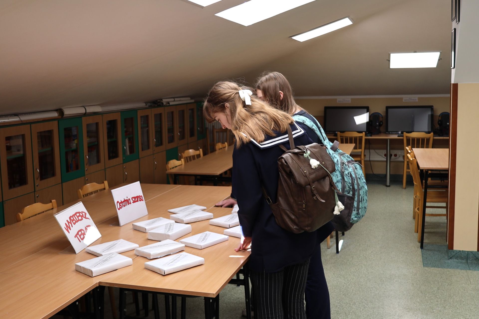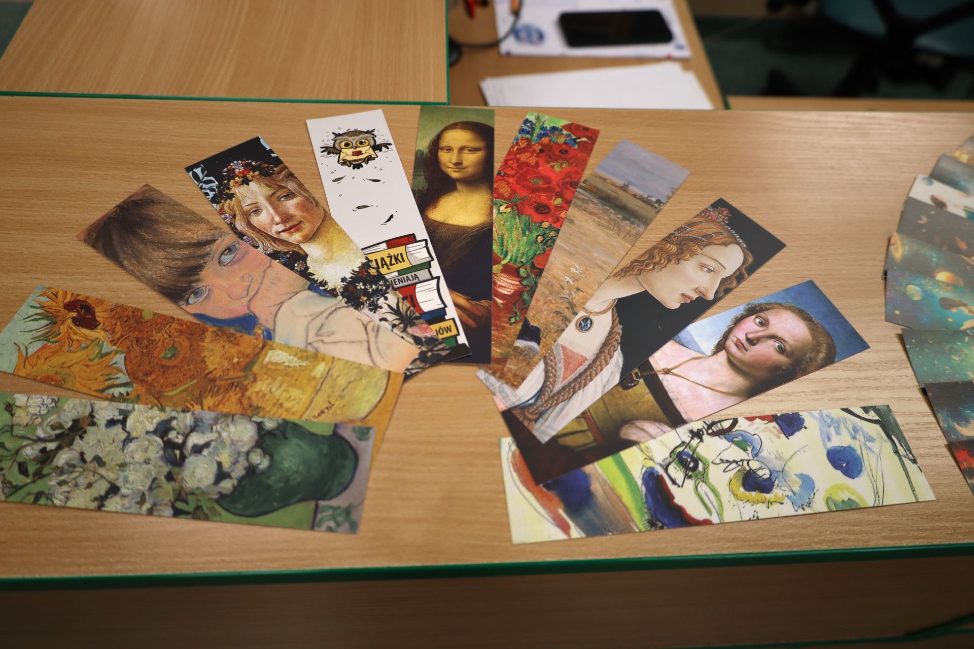 Każdy, kto tego dnia odwiedził bibliotekę, mógł wybrać dla siebie zakładkę do książki. W całej Szkole pojawiły się również plakaty przypominające o Dniu Książki i Praw Autorskich oraz zachęcające do udziału w akcji.